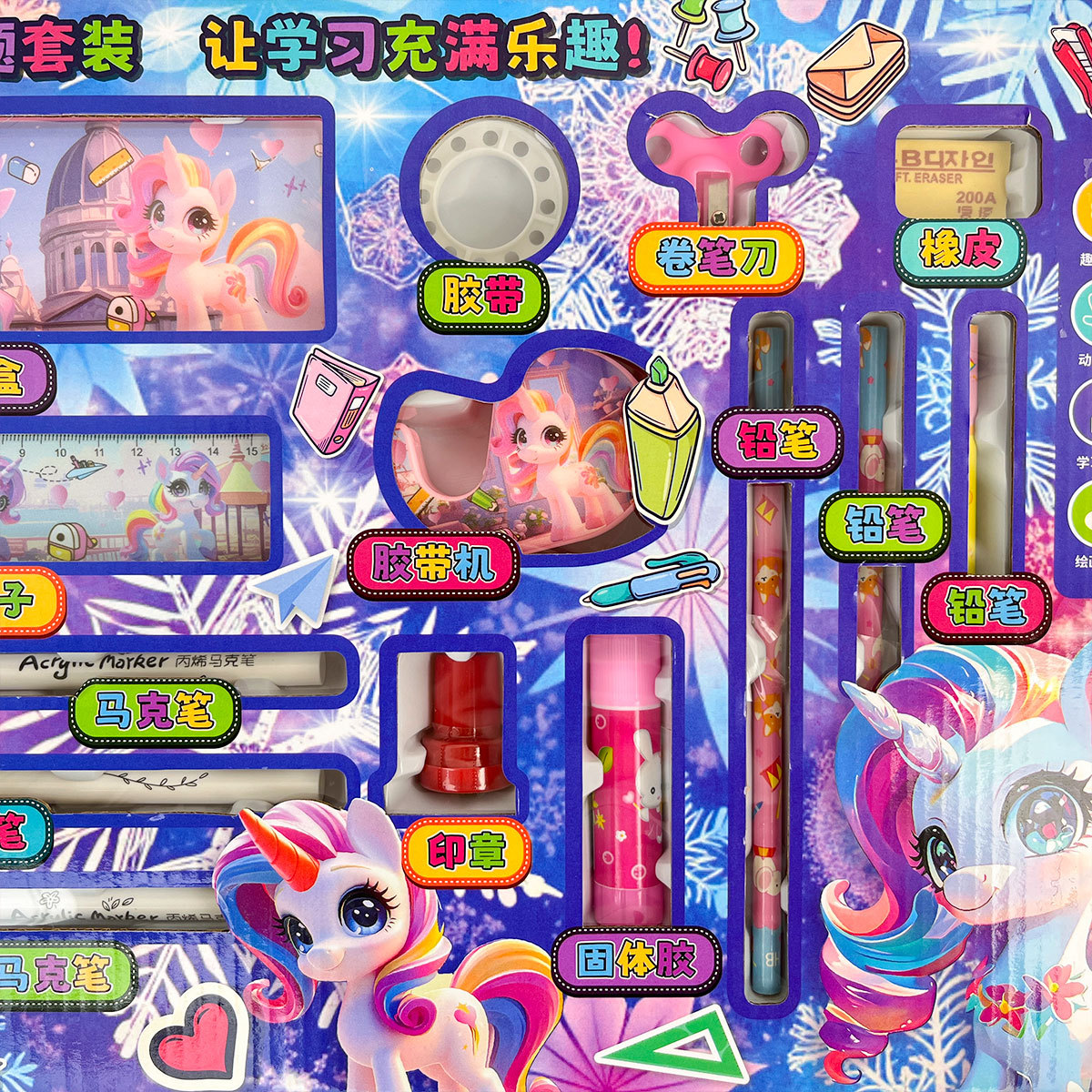 幼稚園の機構の学生募集の贈り物の女の子の文創の学習用品の漫画のおもちゃの鉛筆の箱の文房具のセットの卸売り