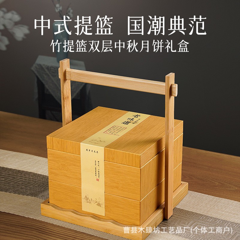 メーカー月餅包装箱、古代スタイルのポータブル氷皮卵黄クリスプ中秋節ギフトボックス空箱端午節木箱