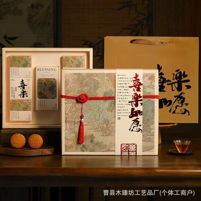 2025 中秋節ギフトボックス新中国風木製ギフトボックス包装ナッツビスケット包装箱お土産中国風引き出しタイプ