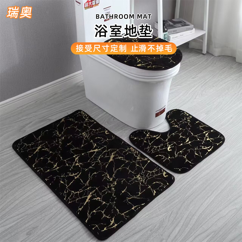 跨境浴室防滑地垫马桶垫三件套烫金PV绒地毯套装长毛地垫加厚吸水