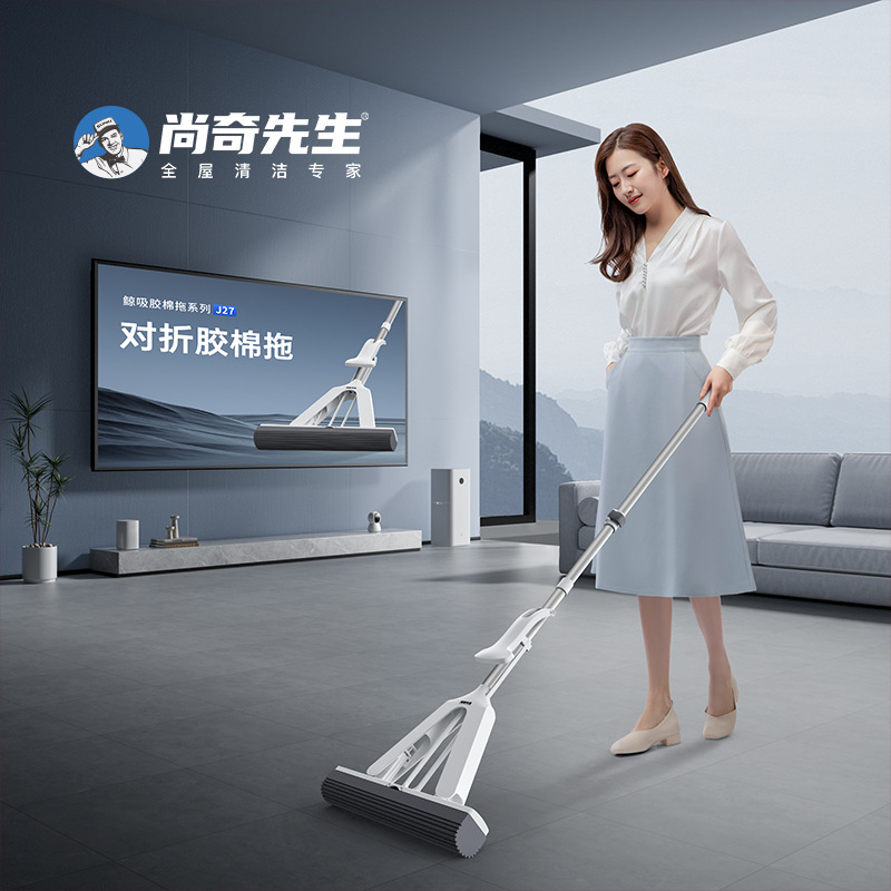 Mr. Shangqi ハンズフリースポンジモップ家庭用ワンモップクリーン 2024 新しいローラータイプの新しいコロイドモップ浴室