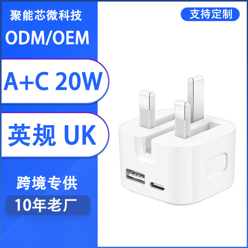 PD20W双口充电器英规A+C充电头折叠脚适用苹果快充跨境批发套装
