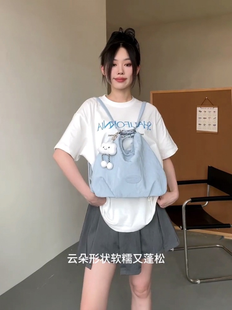 大容量春夏包包女2025新款通勤双肩后背包单肩水桶托特包多功能