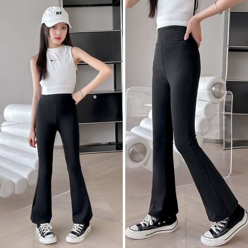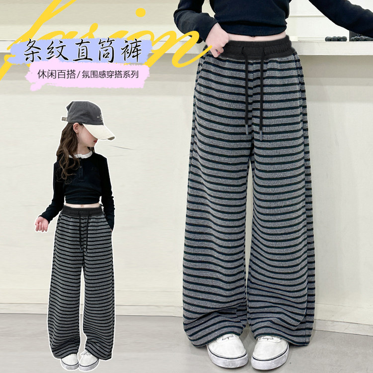 原版面料 女童条纹直筒裤春季新款中大童休闲糯米裤初中生阔腿裤