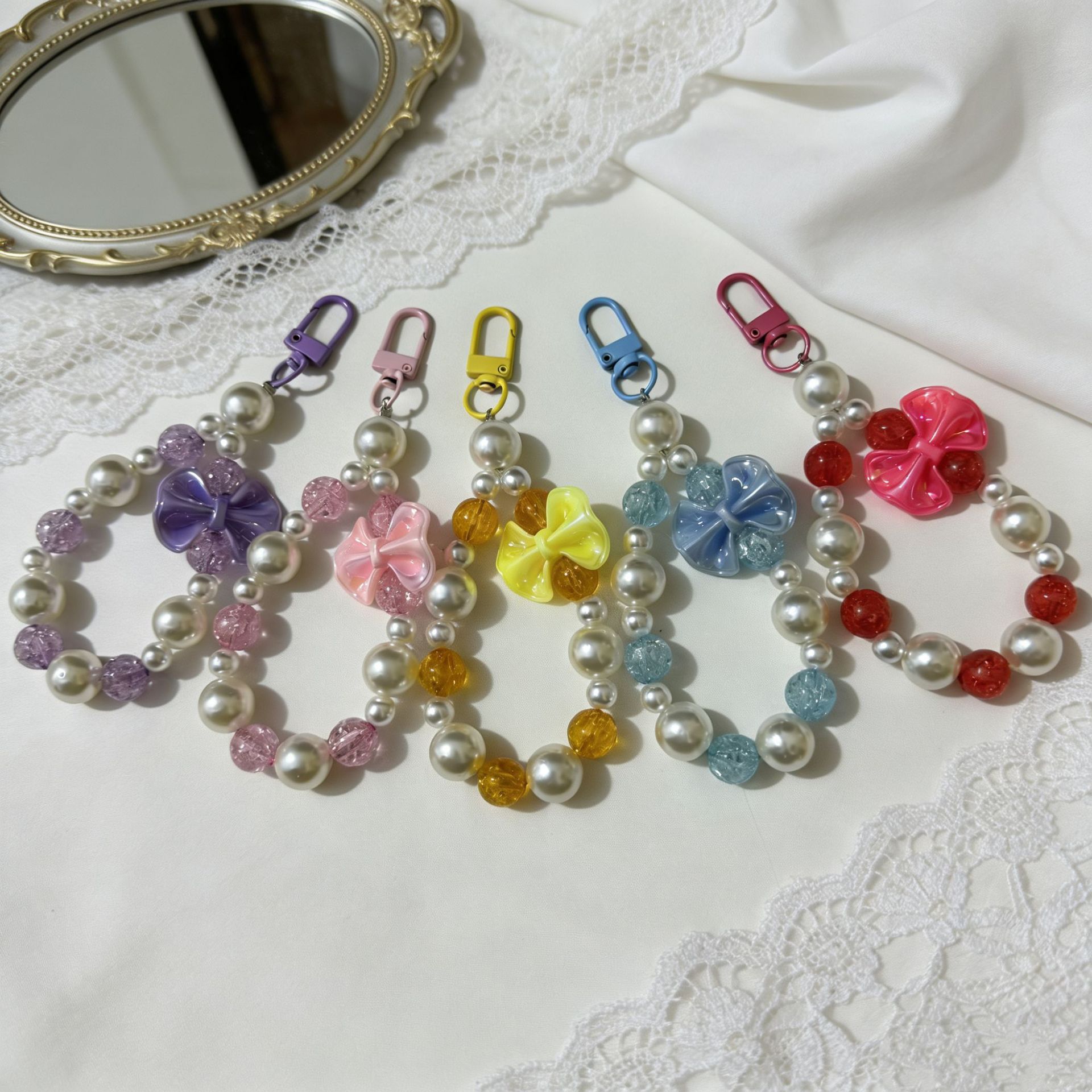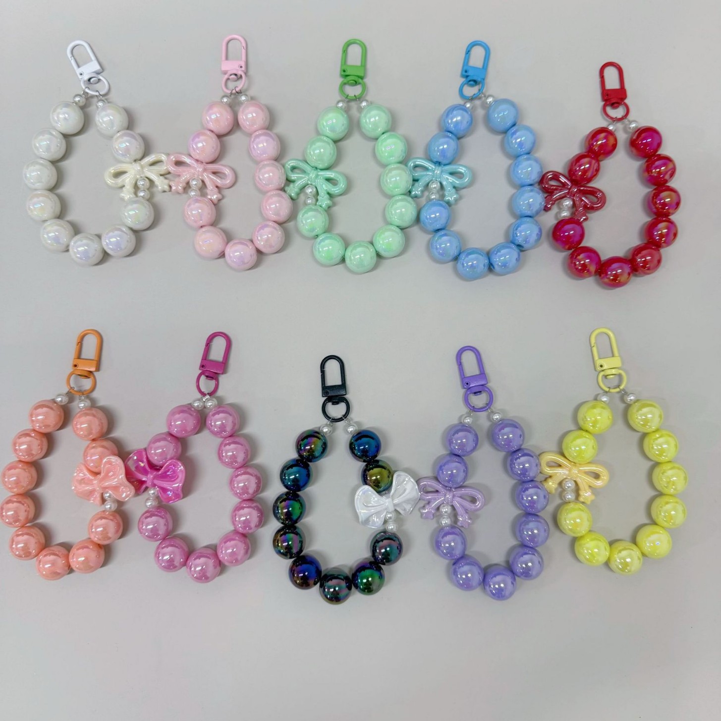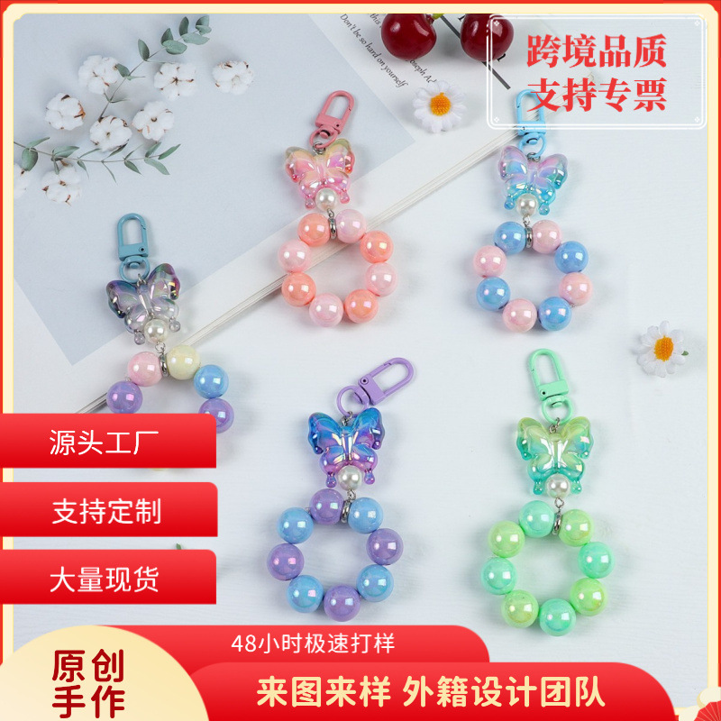 新款爆裂珠珍珠蝴蝶结串珠手机链钥匙扣手机壳挂件包包化妆品挂饰