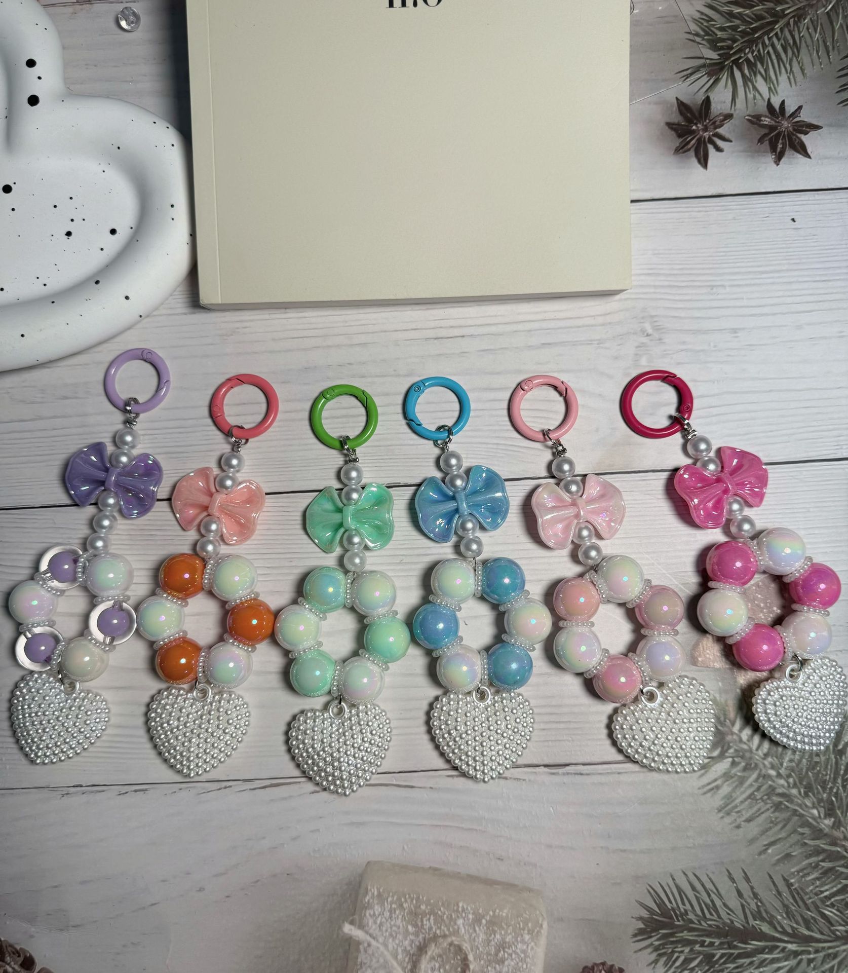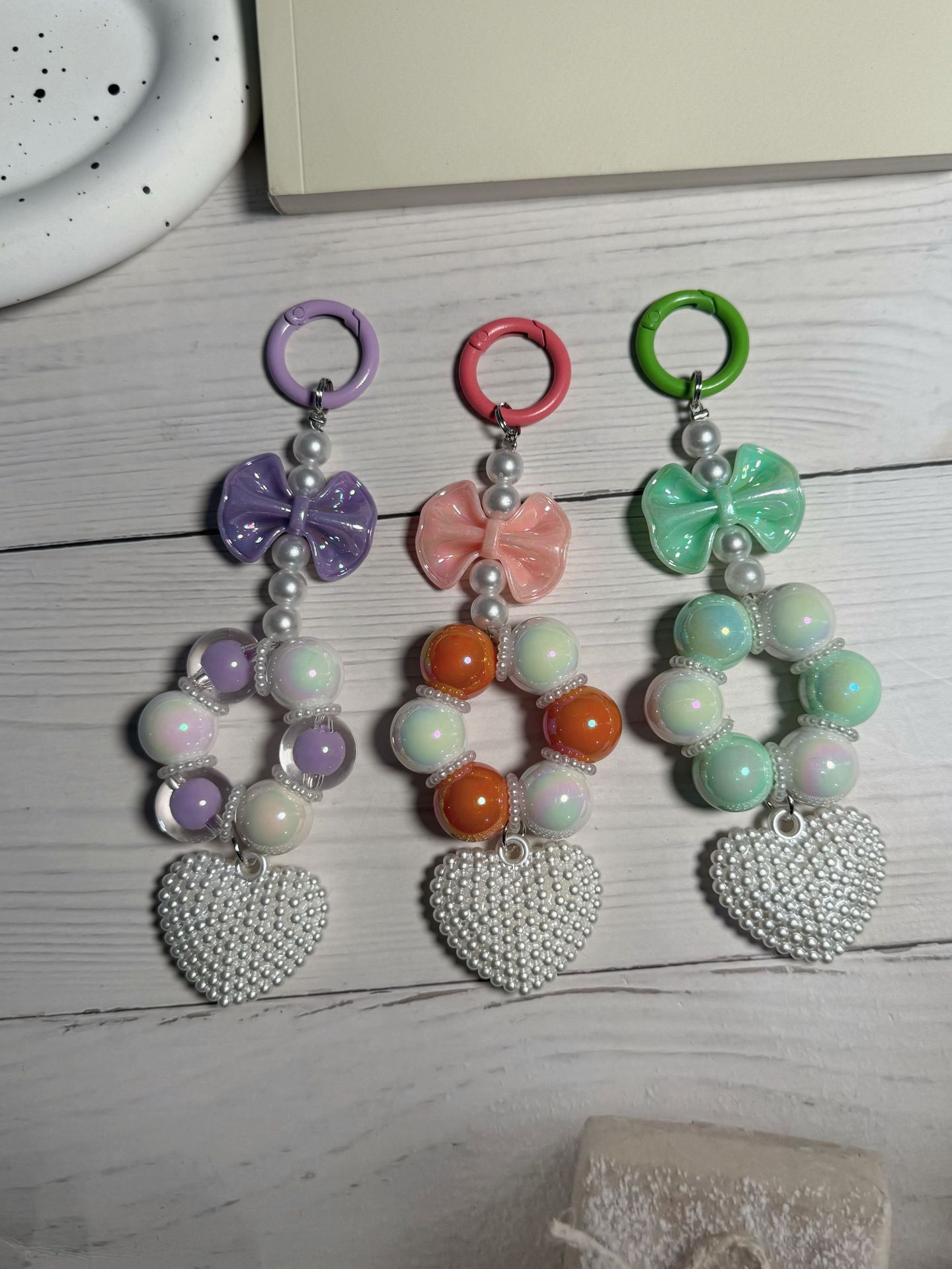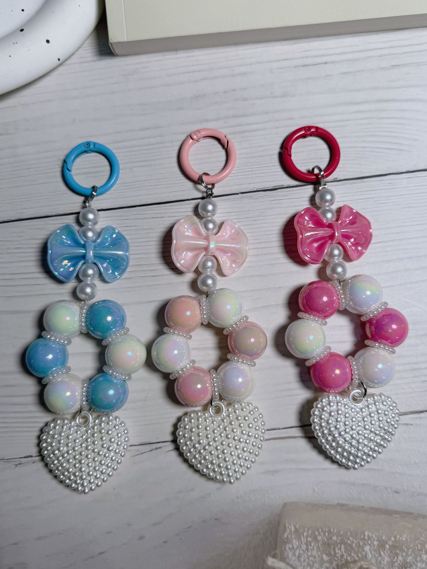 新款爆裂珠珍珠蝴蝶结串珠手机链钥匙扣手机壳挂件包包化妆品挂饰