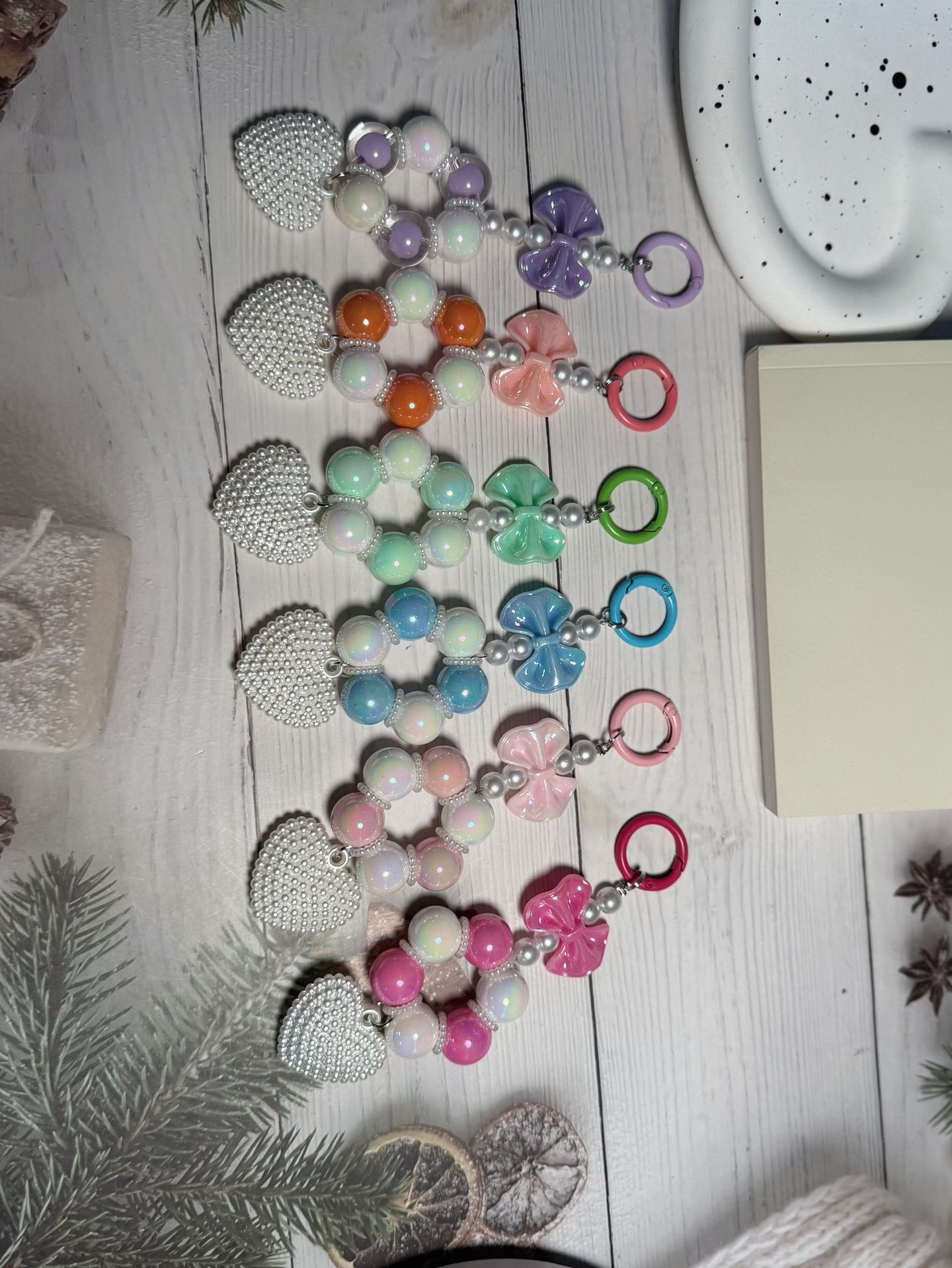 厂家直销新款镀彩蝴蝶结七彩马卡龙珠子手机链,包包挂件,唇彩挂
