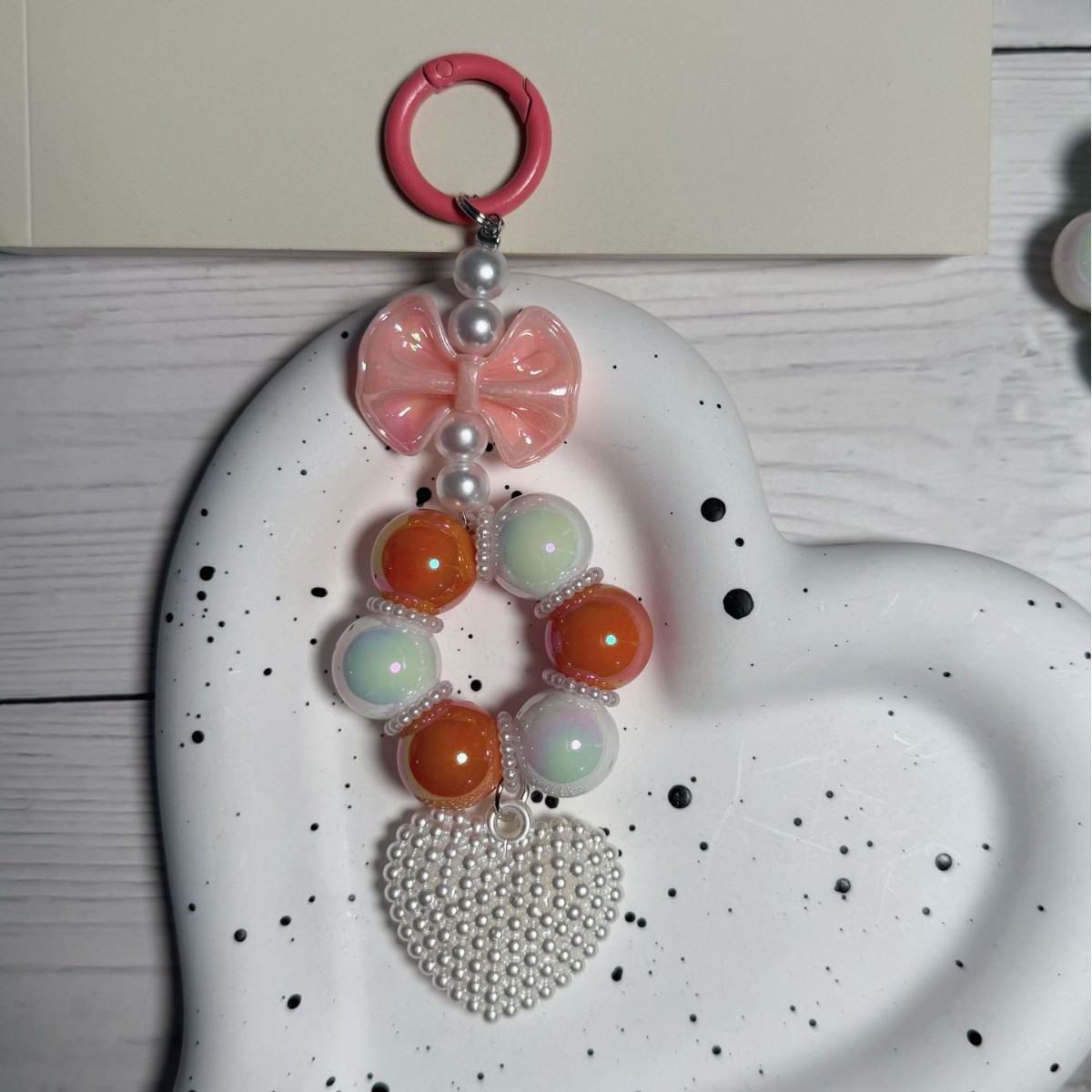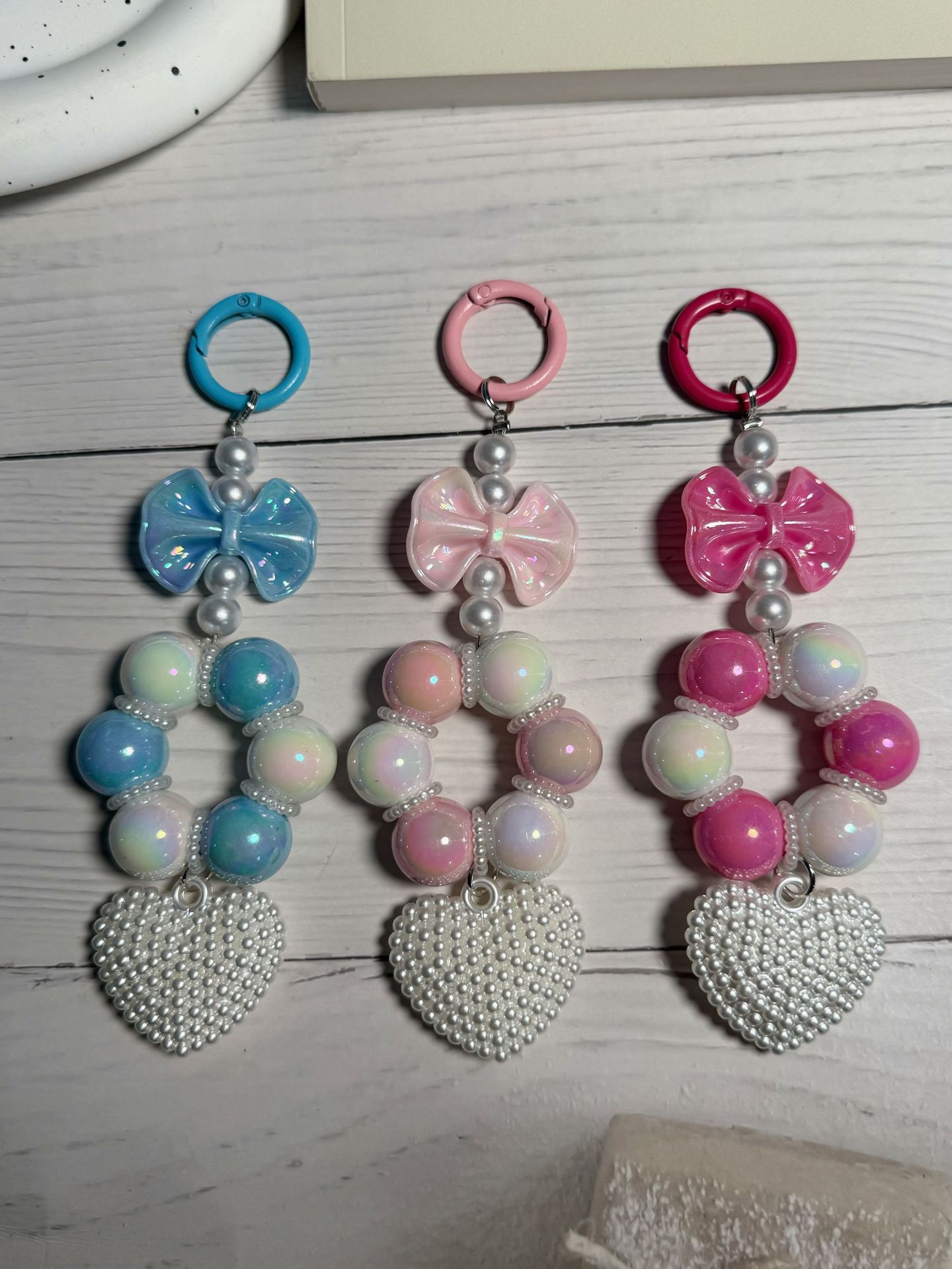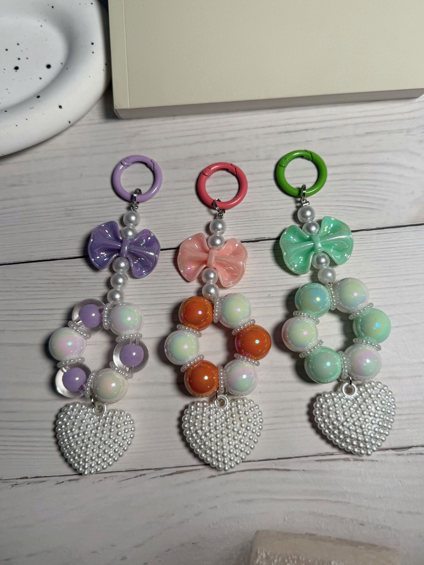 外贸串珠蝴蝶结汽车钥匙扣挂件可爱糖果色烤漆小门扣珍珠配件包饰