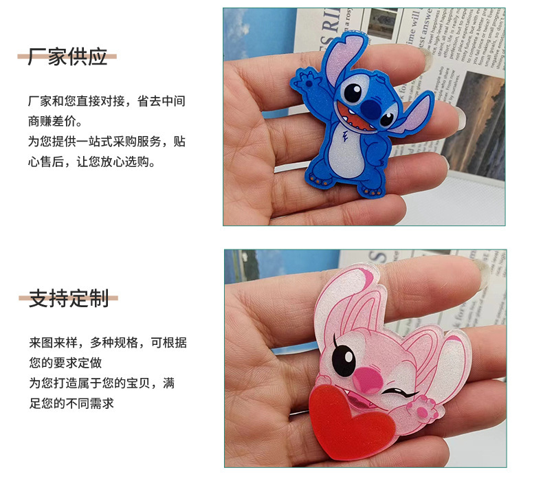 新型の大きいサイズの史迪仔はアクリルのアクセサリの高い顔の値の漫画の創意の個性のアクリルのパッチを貼ります。