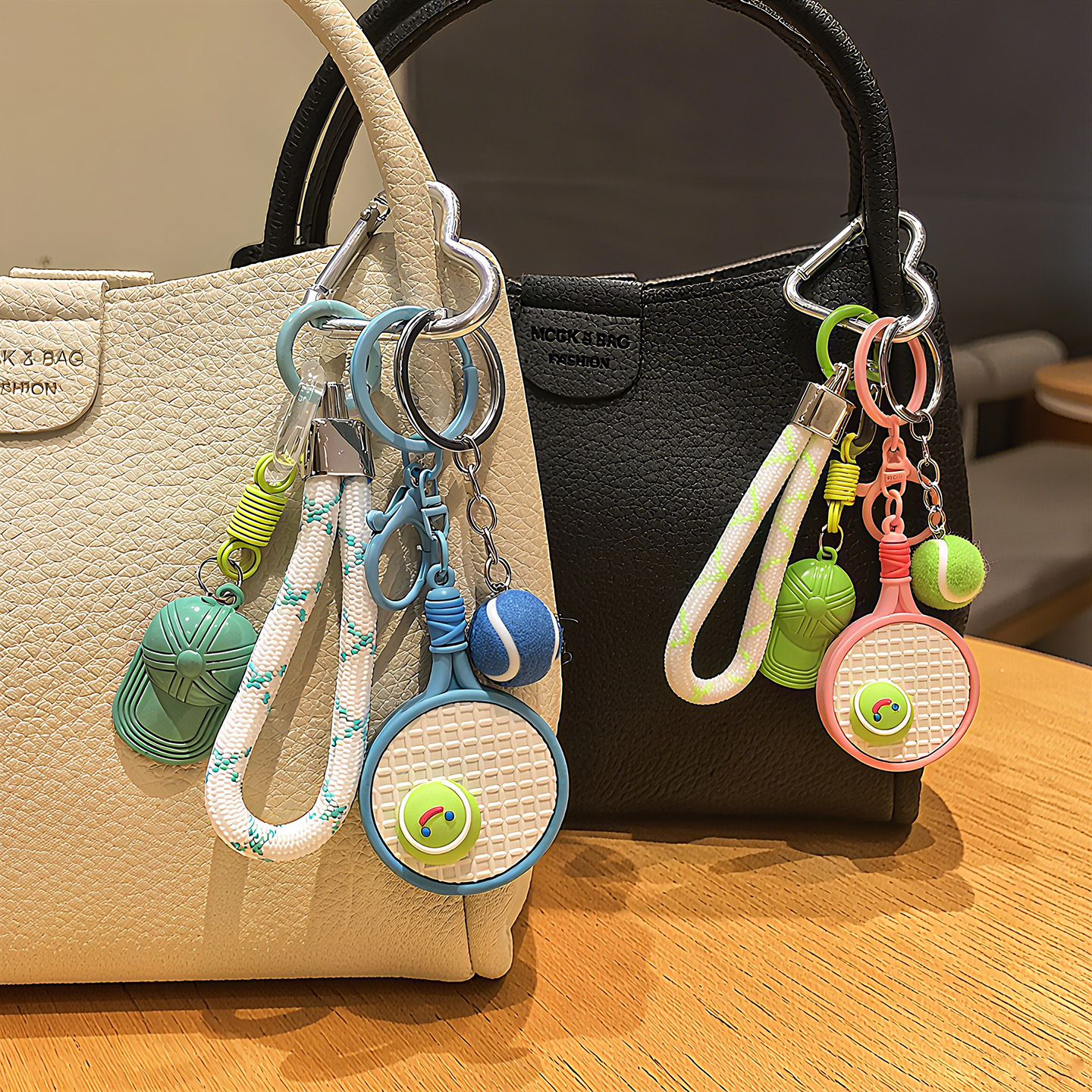 跨境爆款运动风网球系列钥匙扣可爱网球拍包挂件个性背包挂饰批发