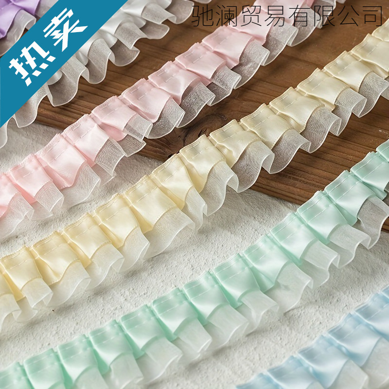 双层褶皱涤纶透明雪纺边辅料袖口手工diy蕾丝花边雪纱带装饰材料