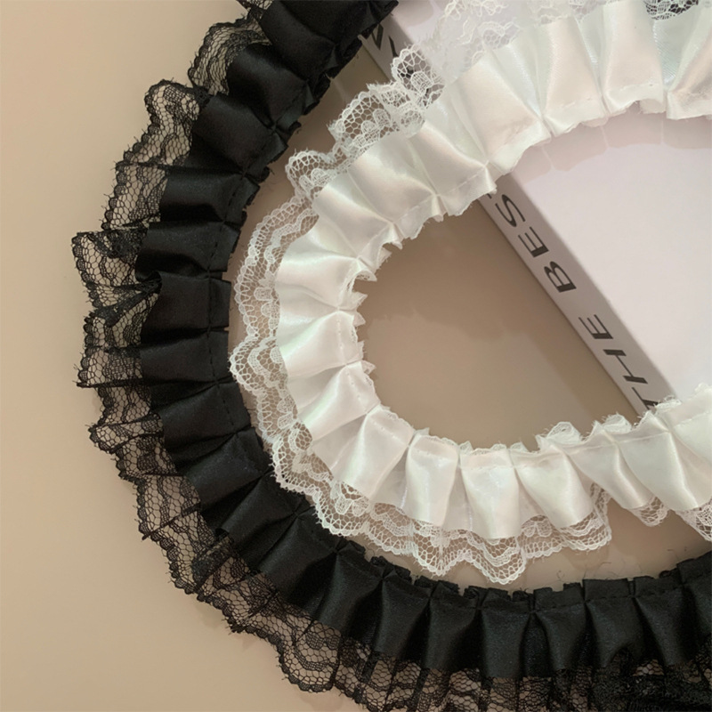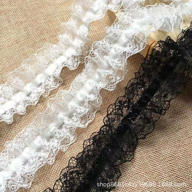 黑白三层雪纺蕾丝花边褶皱裙子下摆装饰袖口娃衣加长布料辅料diy