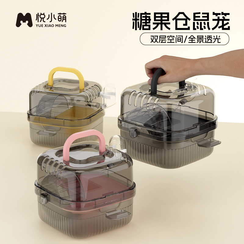 Yuexiaomeng ハムスター飼育ケージ、両用高級ヴィラ、ゴールデンベア、ポータブル、透明ハウス付き