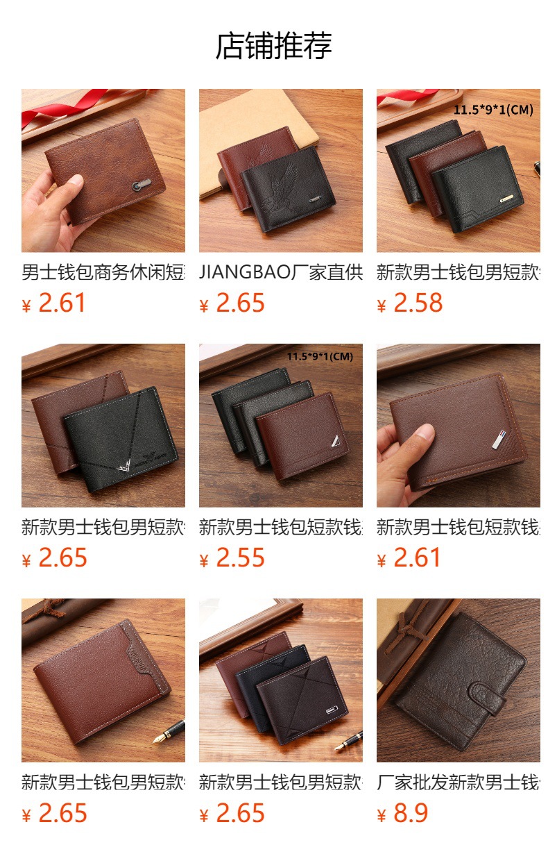 新款男士钱包男短款钱夹男青年简约时尚多卡位荔枝纹横款拼接皮夹