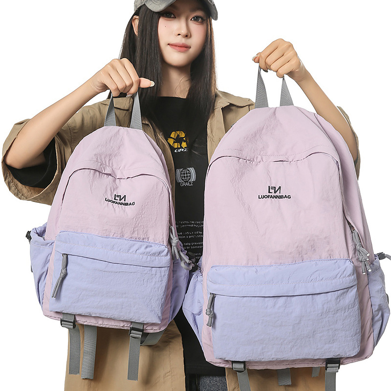 跨境新品撞色书包男女大学生轻便通勤背包简约时尚潮流旅行双肩包