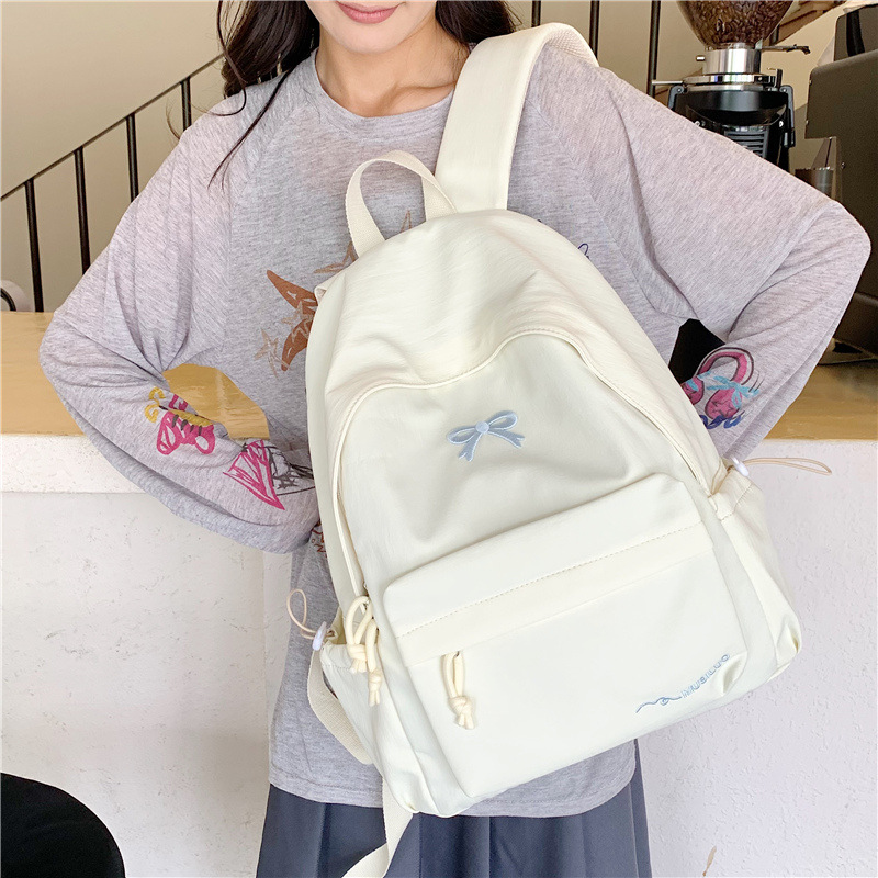 大学生双肩包初中生电脑包韩版简约少女蝴蝶结书包大容量背包女