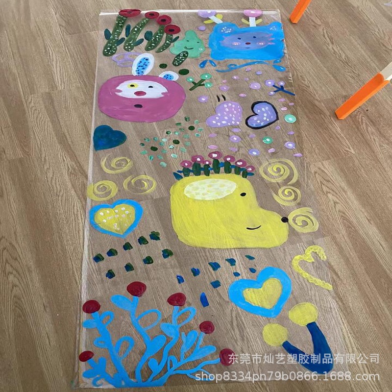 幼稚園環創透明膜絵画プラスチックガラス紙軟膜子供屋外美術画落書き掛け画布