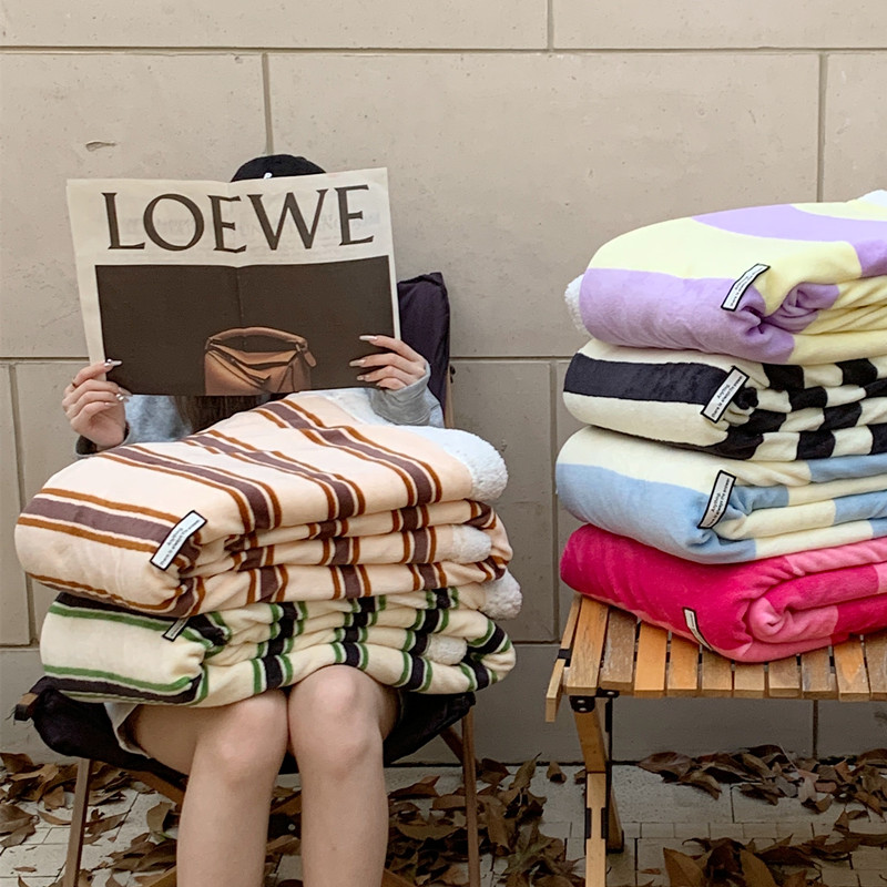 Ins風ストライプウサギ絨毯冬は毛布を厚くしてベッドの上でソファーの毛布を使う高級感のある昼寝毛布