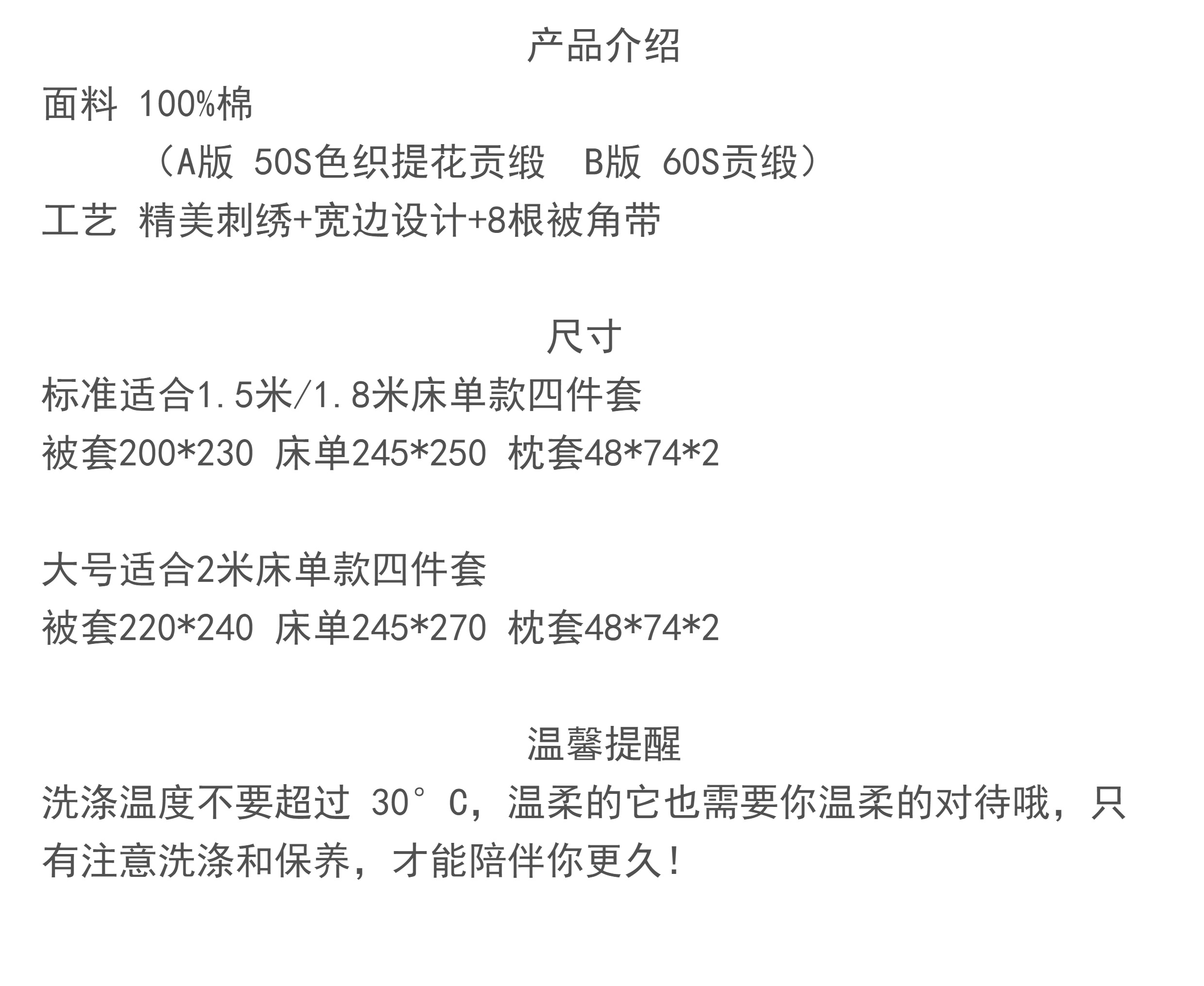 FREEMONDE100S长绒棉四件套轻奢高级全棉纯棉被套四季亲肤床上用