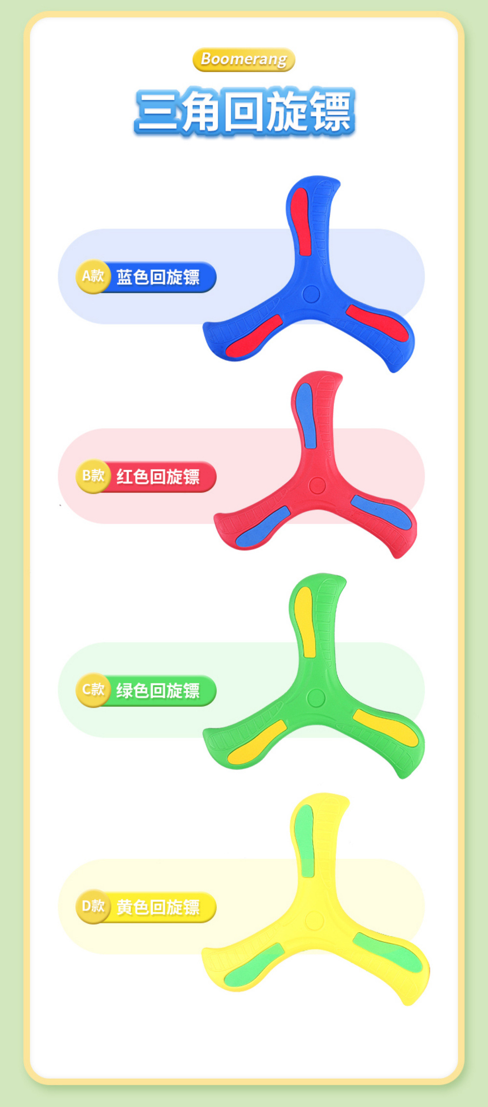 ブルー発光ブーメラン【EVA素材】,赤色発光ブーメラン【EVA素材】,黄色発光ブーメラン【EVA素材】,オレンジ蓄光ブーメラン【EVA素材】,緑色発光ブーメラン[EVA素材],緑色発光スターフライングディスク[EVA素材],赤蓄光スターフライングディスク[EVA素材],白色発光スターフライングディスク[EVA素材],手押し飛行ロケット【普通のソフトヘッド】EVA素材,手押し飛行ロケット【フラッシュソフトヘッド】EVA素材,【フラッシュソフトヘッド3個】EVA素材,【通常のソフトヘッド3個】EVA素材,光る空飛ぶ円盤 1 個 + 光るコマ 1 個 + 空飛ぶ円盤 2 個 [青],光る空飛ぶ円盤 1 個 + 光るコマ 1 個 + 空飛ぶ円盤 2 個 [ピンク],光る空飛ぶ円盤 1 個 + 光るコマ 1 個 + 空飛ぶ円盤 2 個 [緑],光る空飛ぶ円盤 1 個 + 光るコマ 1 個 + 空飛ぶ円盤 2 個 [紫],黄色い恐竜フリスビー【EVA素材】,グリーンパンダフリスビー【EVA素材】,オレンジ スケートボード ドラゴン フリスビー [EVA素材],ブルータートルスーパーマンフリスビー【EVA素材】,ブルースペースブーメラン 36CM 【EVA素材】,レッド恐竜ブーメラン 36CM 【EVA素材】,42inch 恐竜ブーメラン【EVA素材】,42inch リトルスネークブーメラン【EVA素材】,42inch サメブーメラン【EVA素材】,23.5CM 大型カエルフリスビー【EVA素材】,23.5CM ラージタイガーフリスビー【EVA素材】,20CM ブルーアストロノート [TPR素材],20CM グリーン恐竜 [TPR素材],20CM オレンジベア【TPR素材】,20CM オレンジアニマル [TPR素材],20CM ピンクポニー [TPR素材]