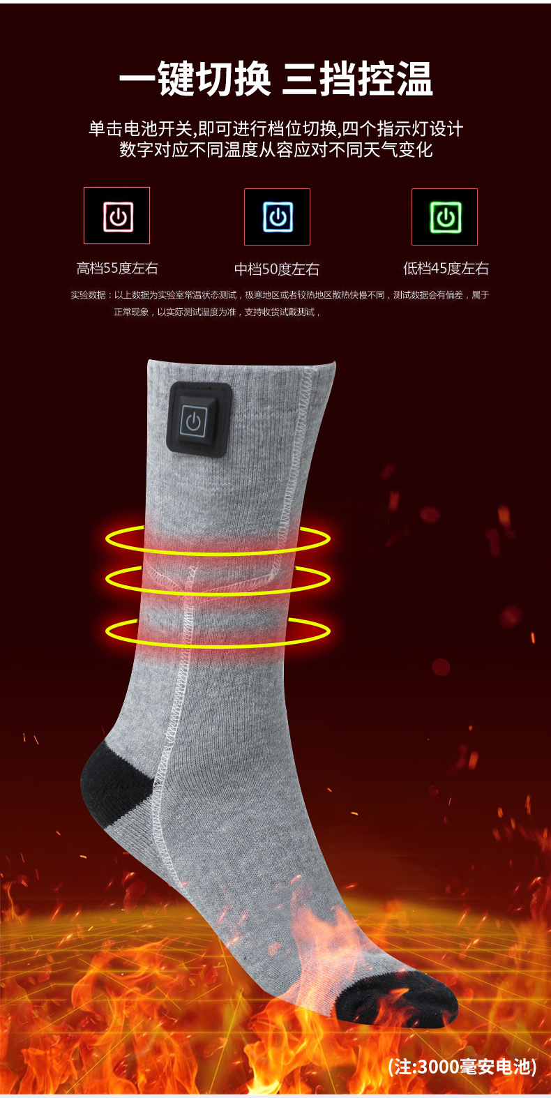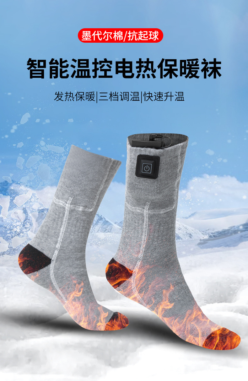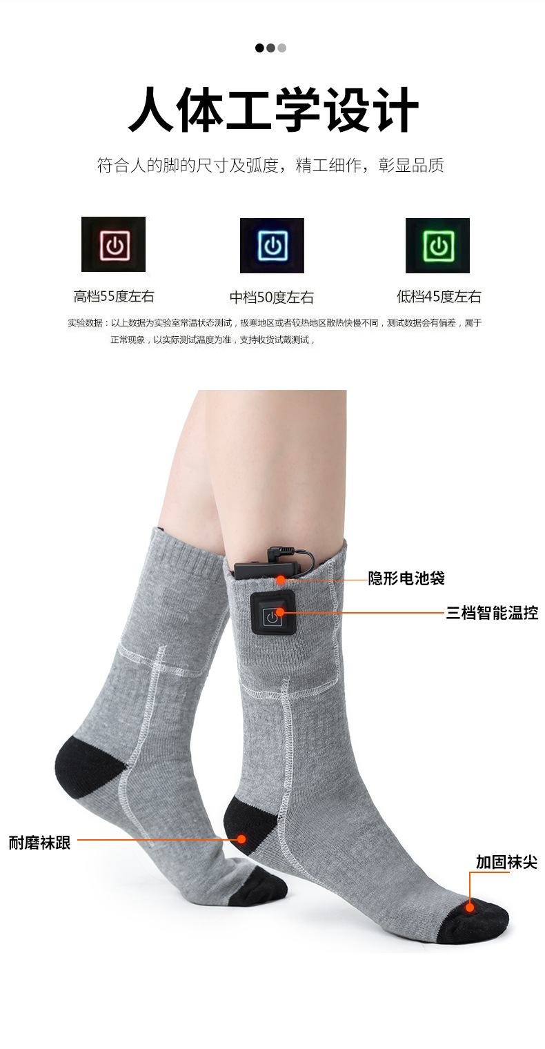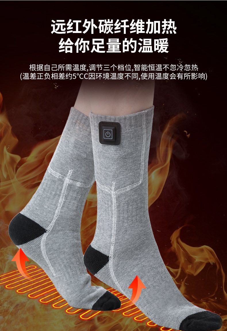 クロスボーダー発熱靴下男女暖足宝冬保温靴下温調充電スキー靴下三段調温電気靴下