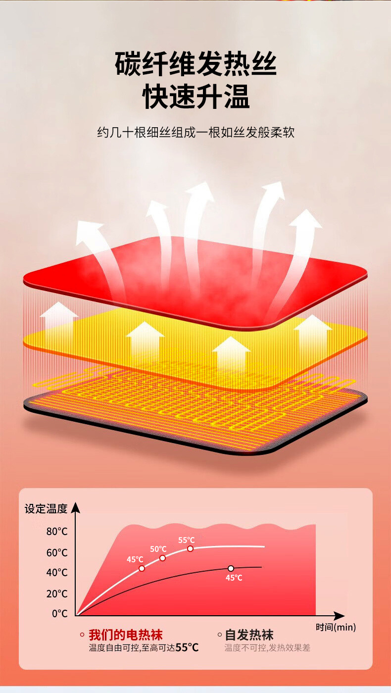 越境冬知能温調発熱靴下電気加熱長筒保温電気靴下充電加熱足神器