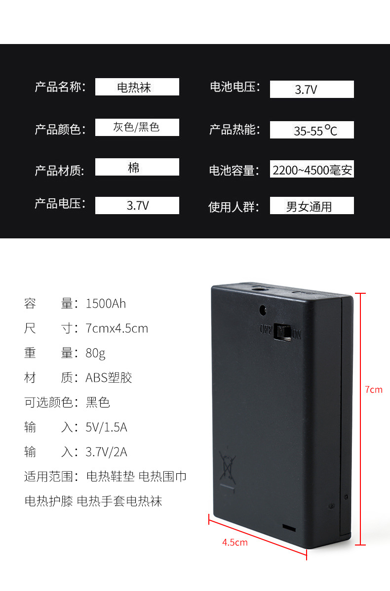 冬の防寒・保温・足温めソックス、アウトドアスキー・サイクリング用電熱ソックスを充電するための国境を越えた特別な供給