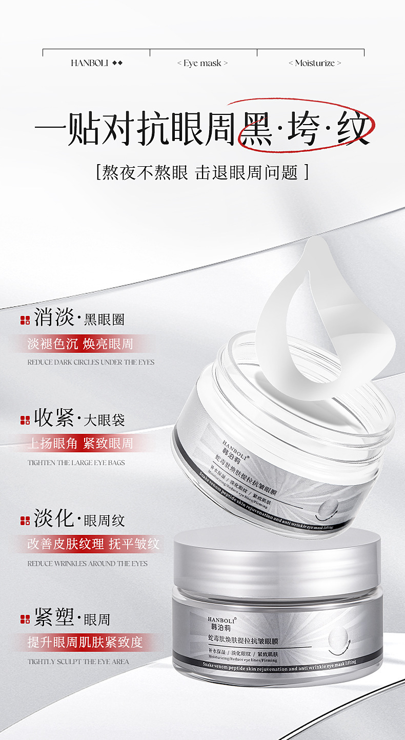 Hanboli ヘビ毒ペプチド若返りリフティング抗しわアイマスク保湿と引き締め目の周りのアイケア卸売配送 8176