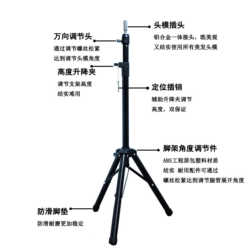 美发头模支架三角架剪发假发模特头三脚架厂落地款架子可转动伸缩