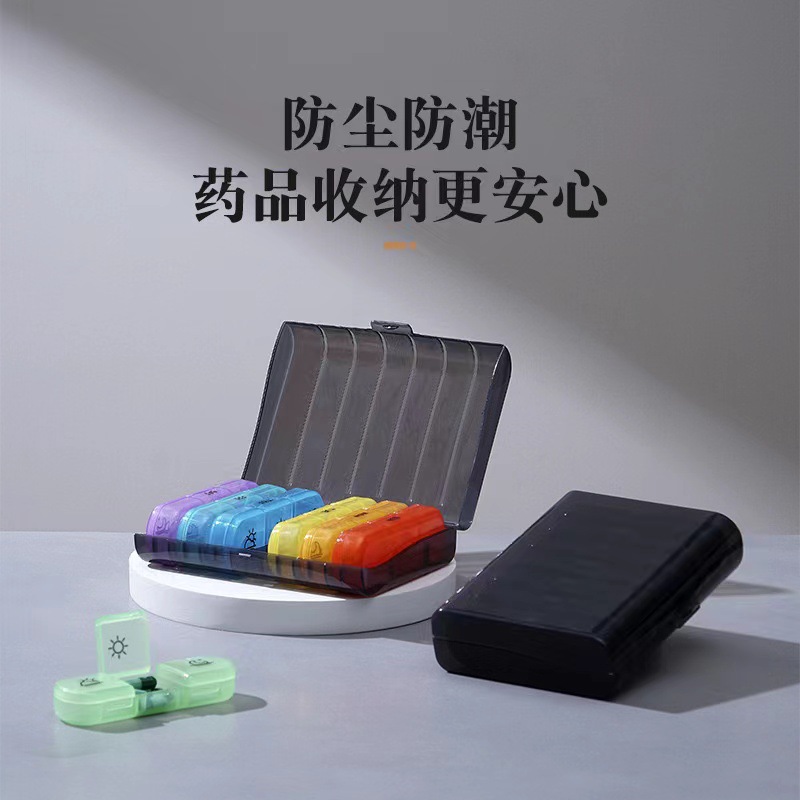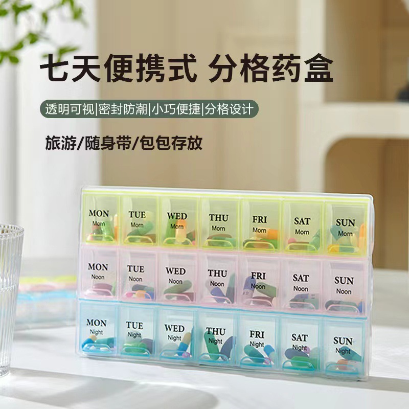 クロスボーダー三色薬箱分注箱ジュエリー雑物箱一週間携帯7日間薬箱分類21格収納箱PP