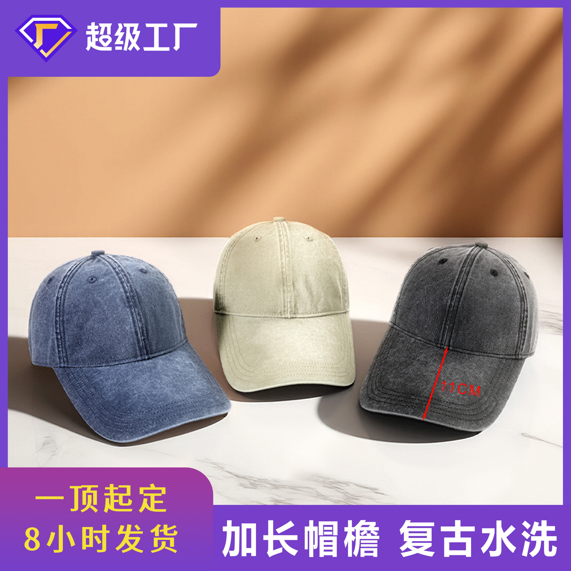 秋冬加长檐洗水棒球帽复古文艺鸭舌帽女大头围软顶遮阳防晒帽子男