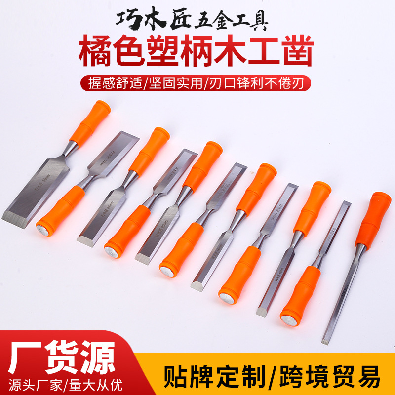 巧木匠橘色凿子木工8-38mm敲击木雕刻凿穿心凿平凿手工扁铲塑柄
