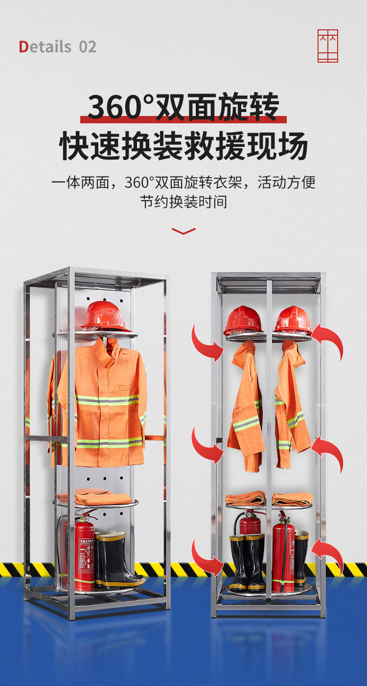 ステンレスメーカー両面戦闘服消防服ハンガー消防士救助服消防ラック装備回転ラック