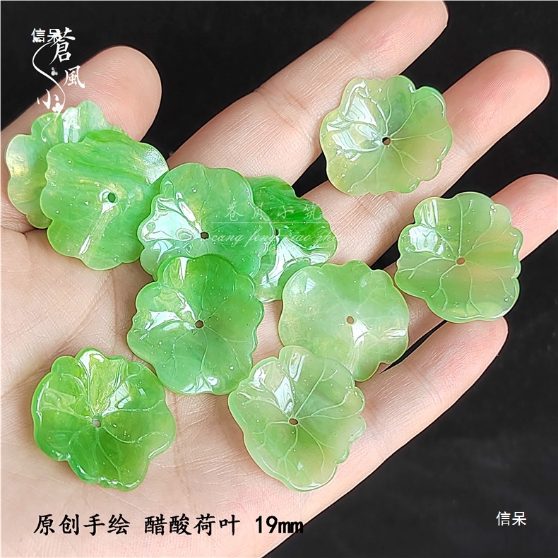 手描き酢酸ハス葉19mm古風手作りdiyアクセサリーヘアピン漢服材料配合