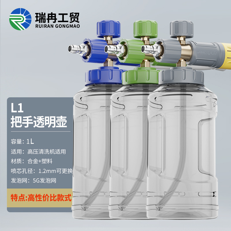 国境を越えた新しい高圧洗車スプレーボトル 1/4 クイックプラグオス透明台州 PA ボトルフォームボトル扇形調整可能 1L