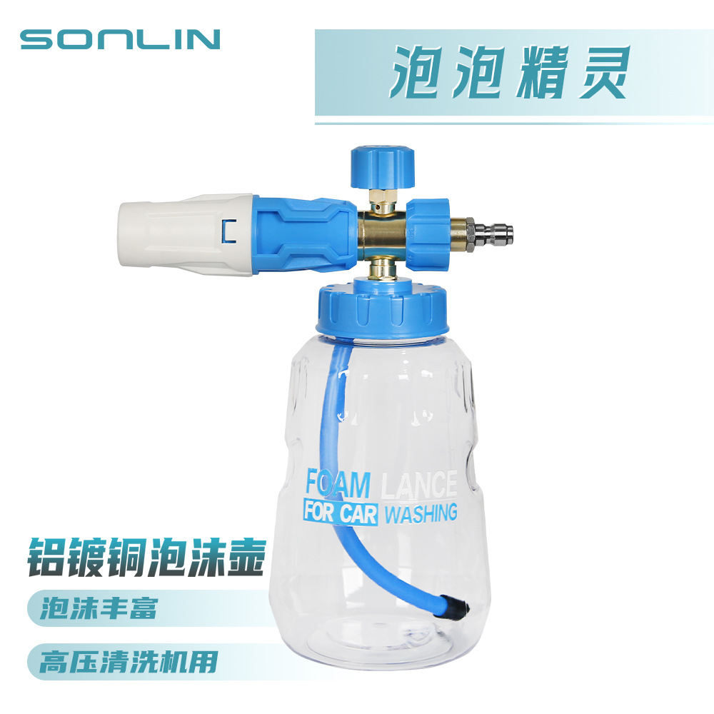 跨境新款高压洗车泡沫壶泡泡精灵Pa壶铝镀铜透明洗车快插清洗枪用