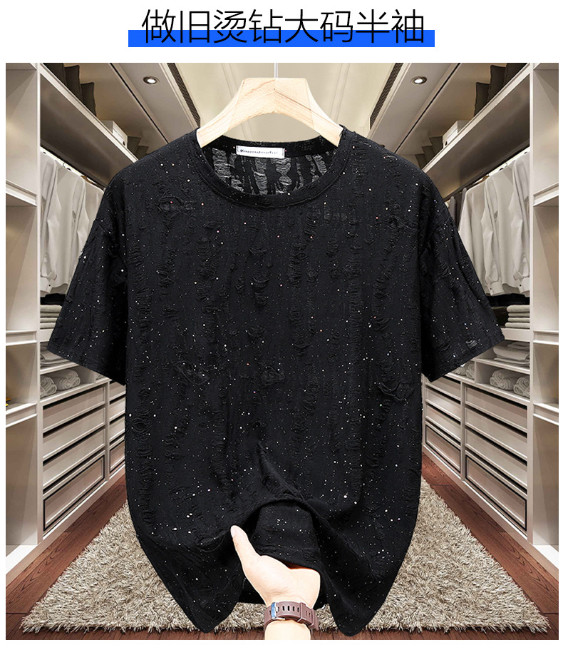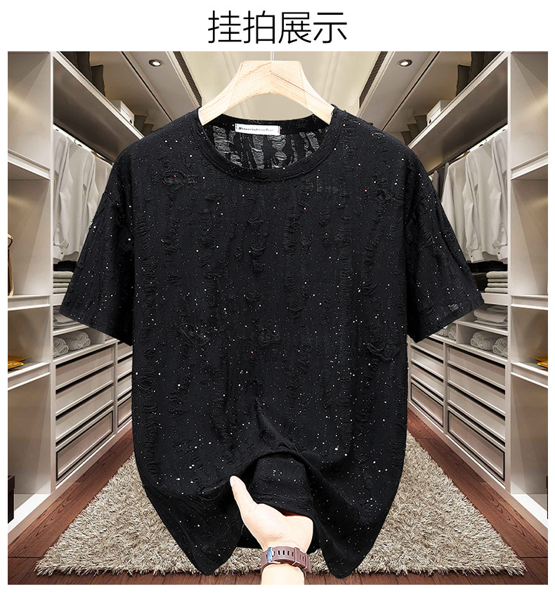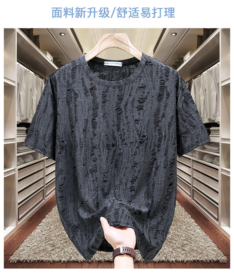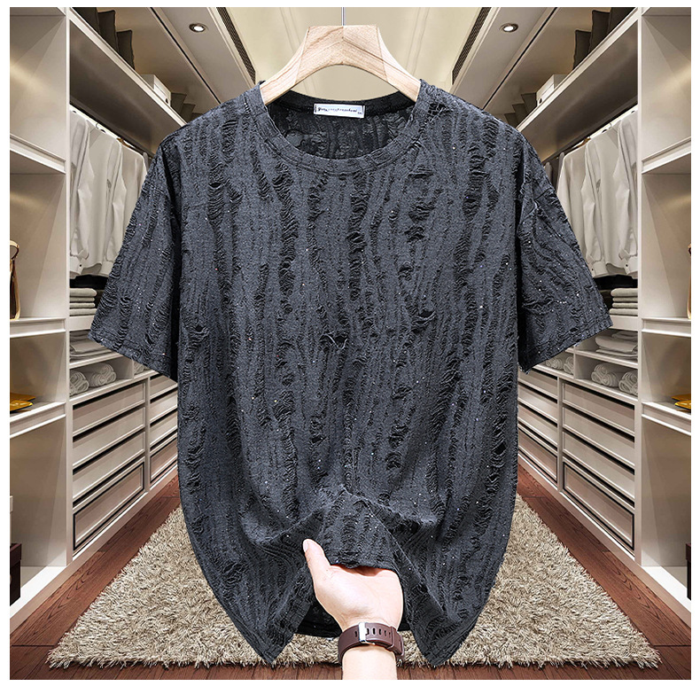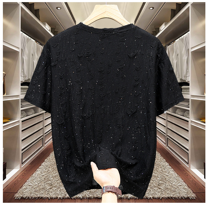ブラック 236 リップド カスミソウ 半袖,グレー 236 破れた星付き半袖