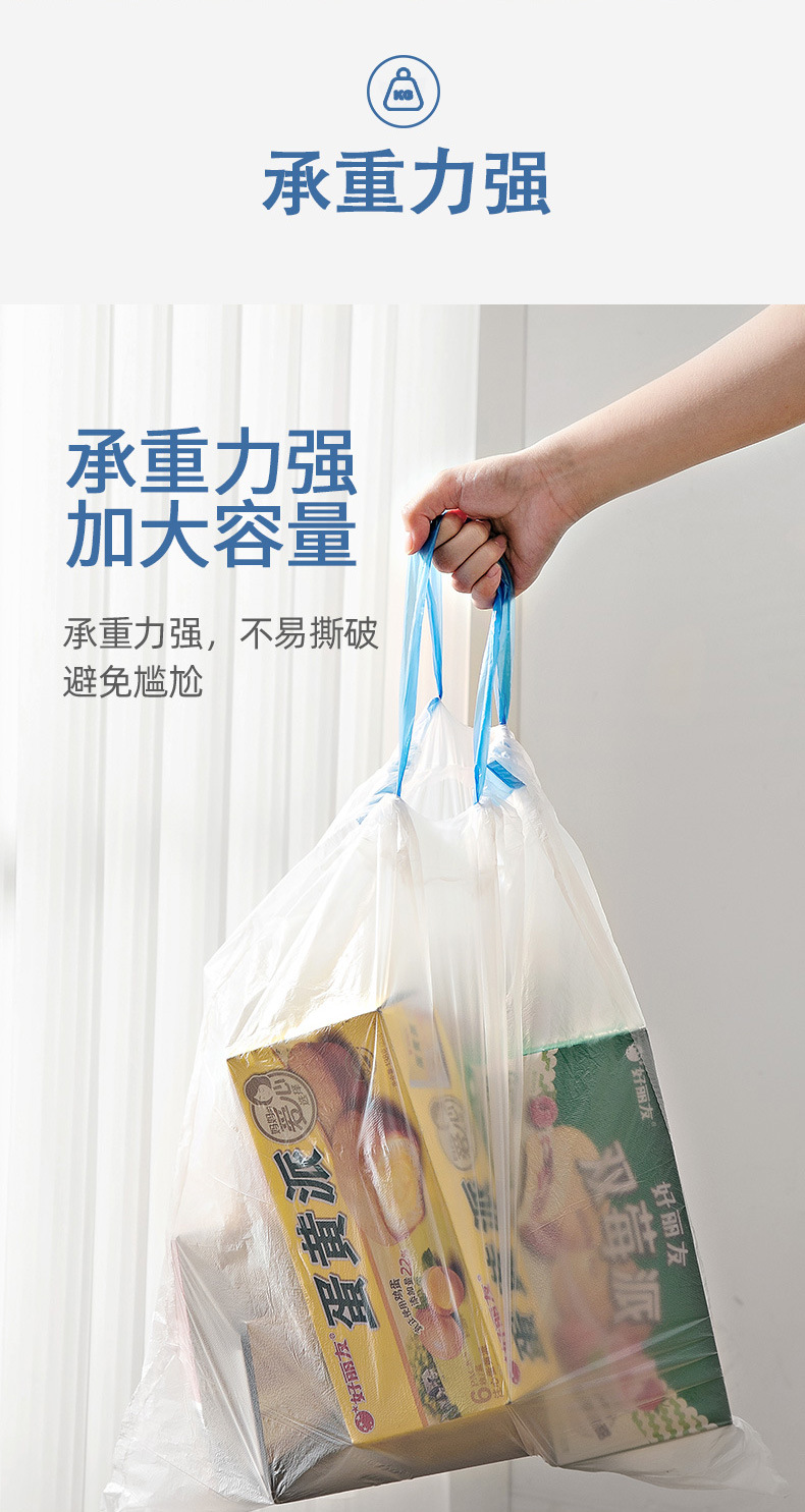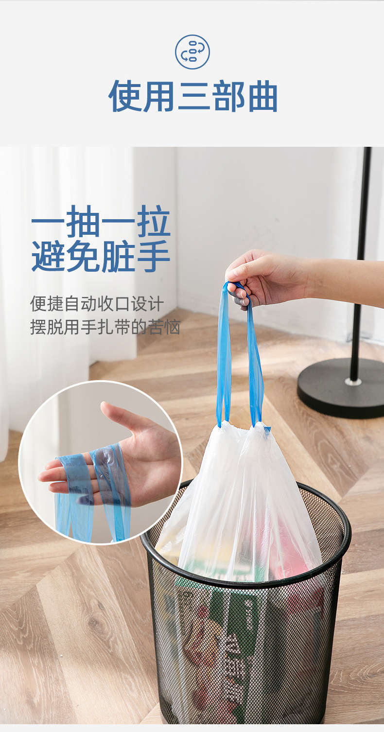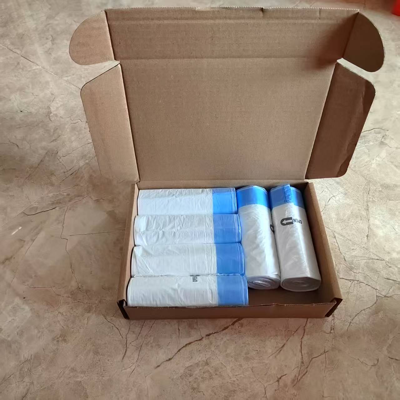 使い捨てゴミ袋を厚くして家庭用自動レジの携帯式汚れない手でロープを引くゴミ袋の飛行機箱を包装する