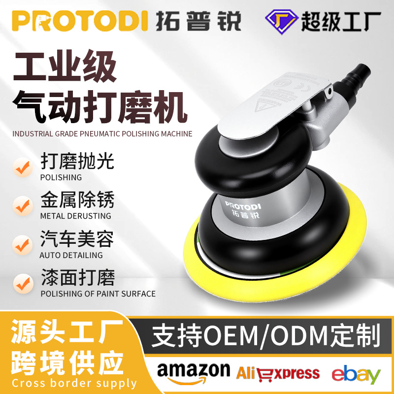 普力马气动打磨机5寸砂纸小型气磨机全钢干磨工业级打蜡抛光机