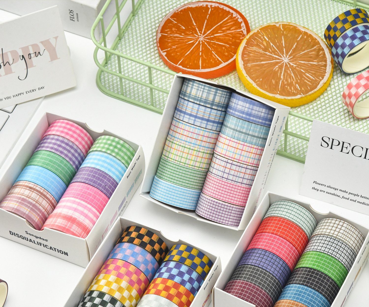 韓国yoyilstudio同梱和紙テープ韓系手帳装飾素材基礎格子縞手帳シール