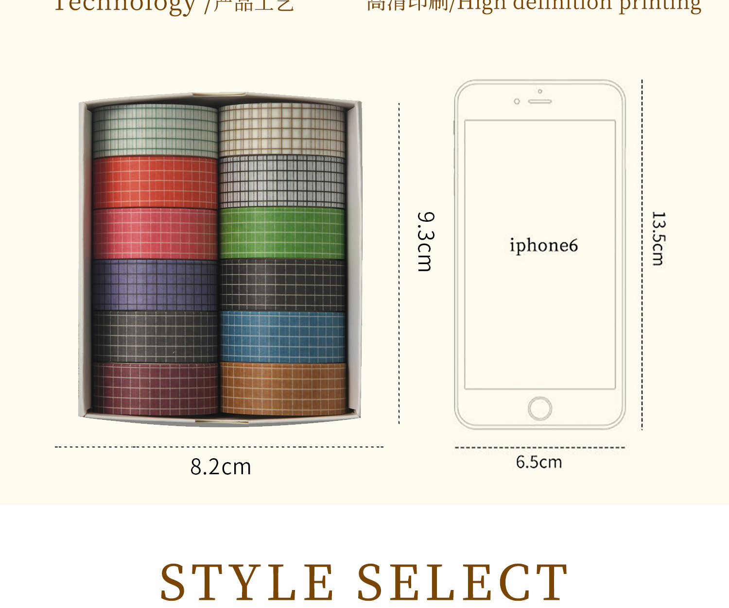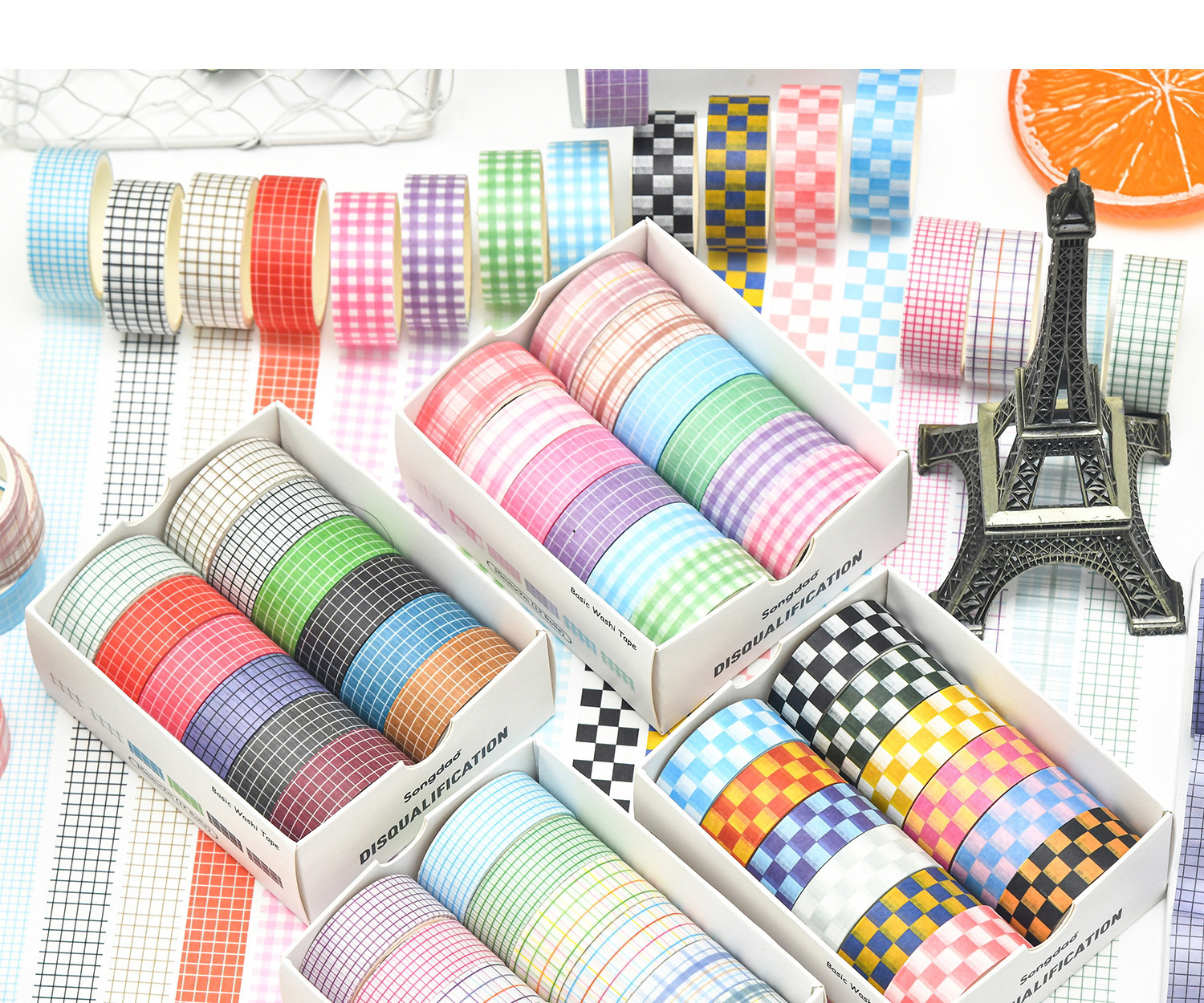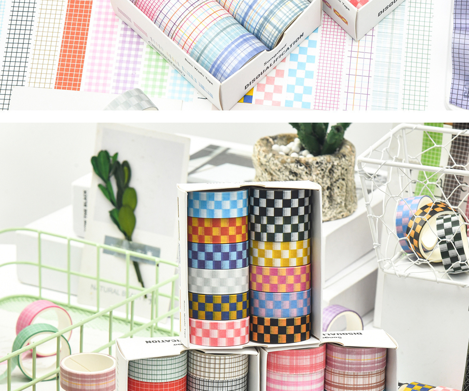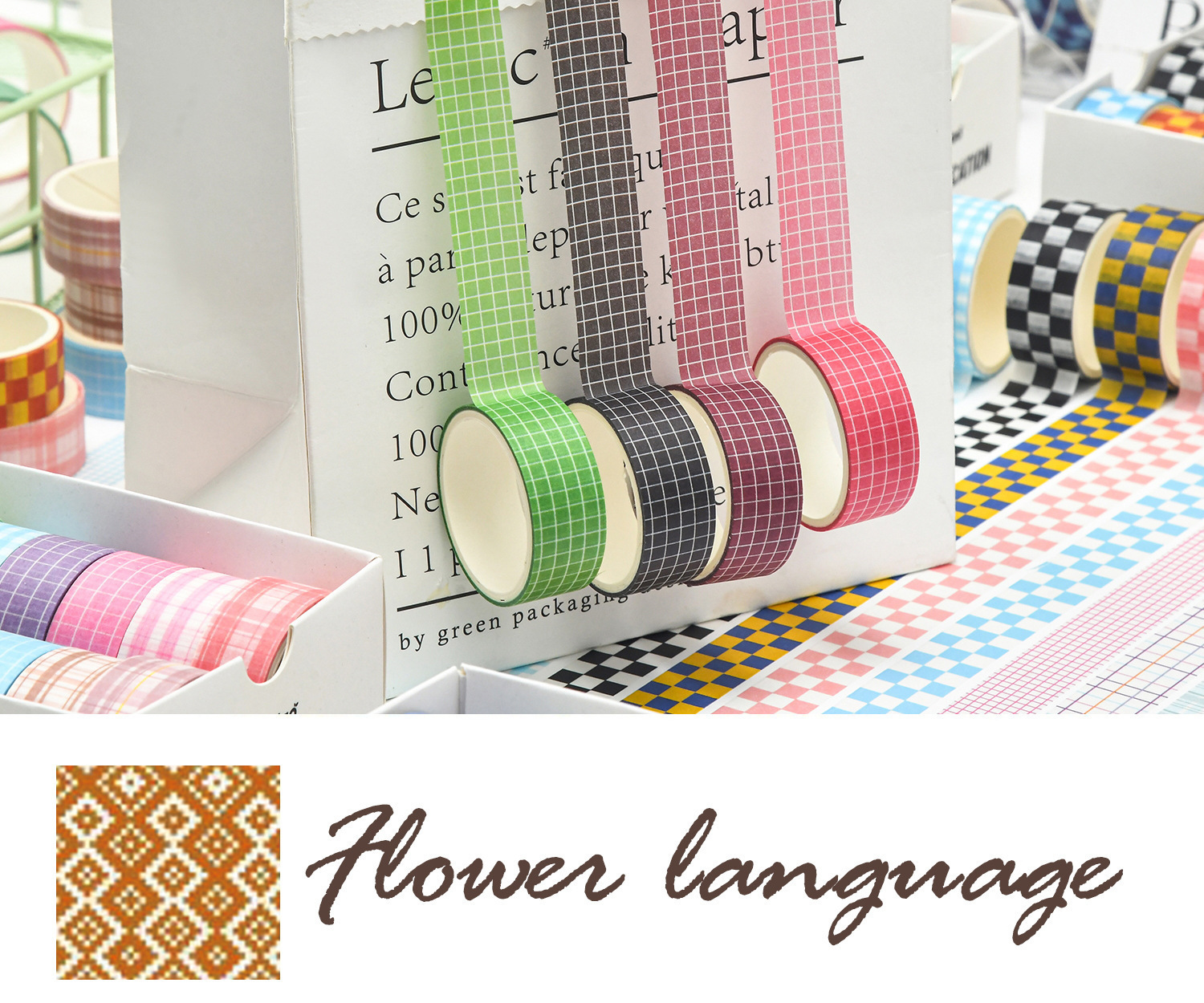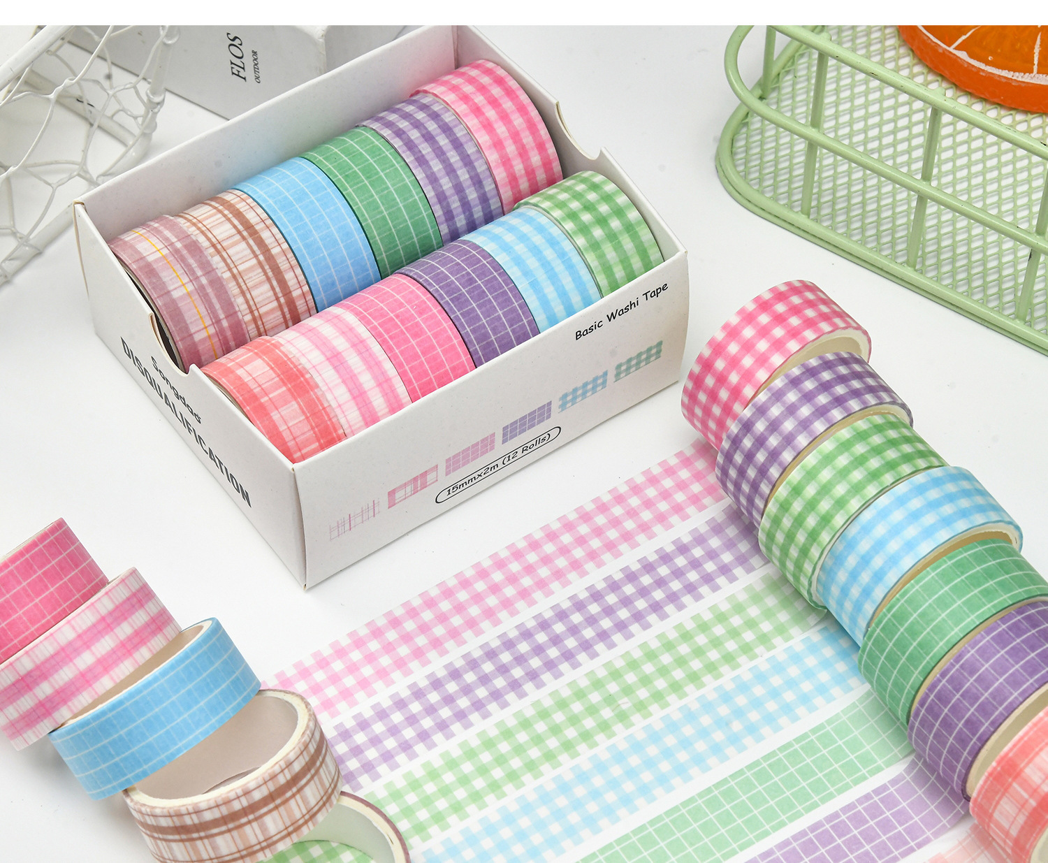 12巻手帳テープかわいいins小清新diy装飾シール田園風格子制御手帳テープセット