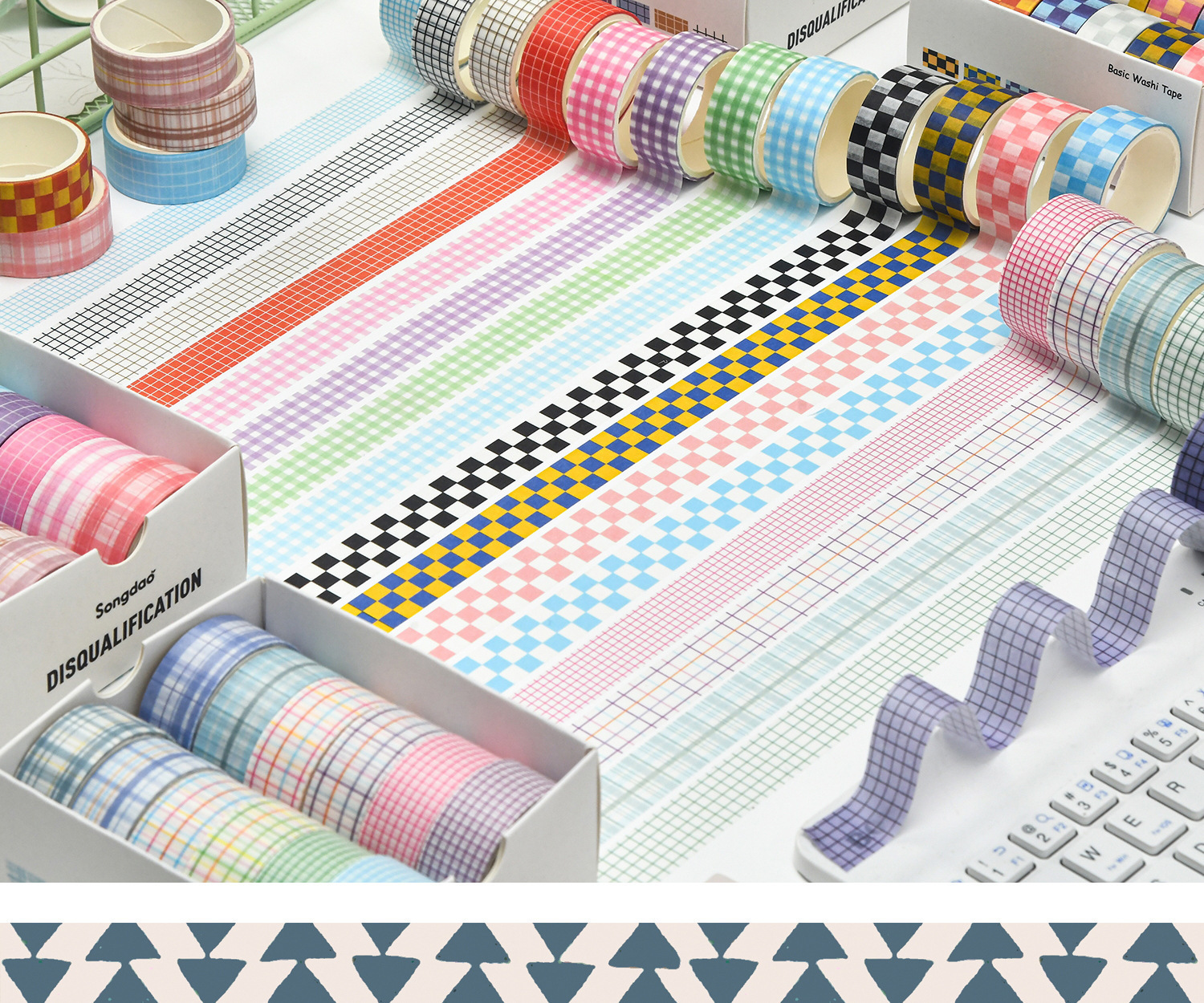 インスタ风韩国yoyilstudio和纸テープ韩系手帐デコレーション素材基础格纹手帐ステッカー