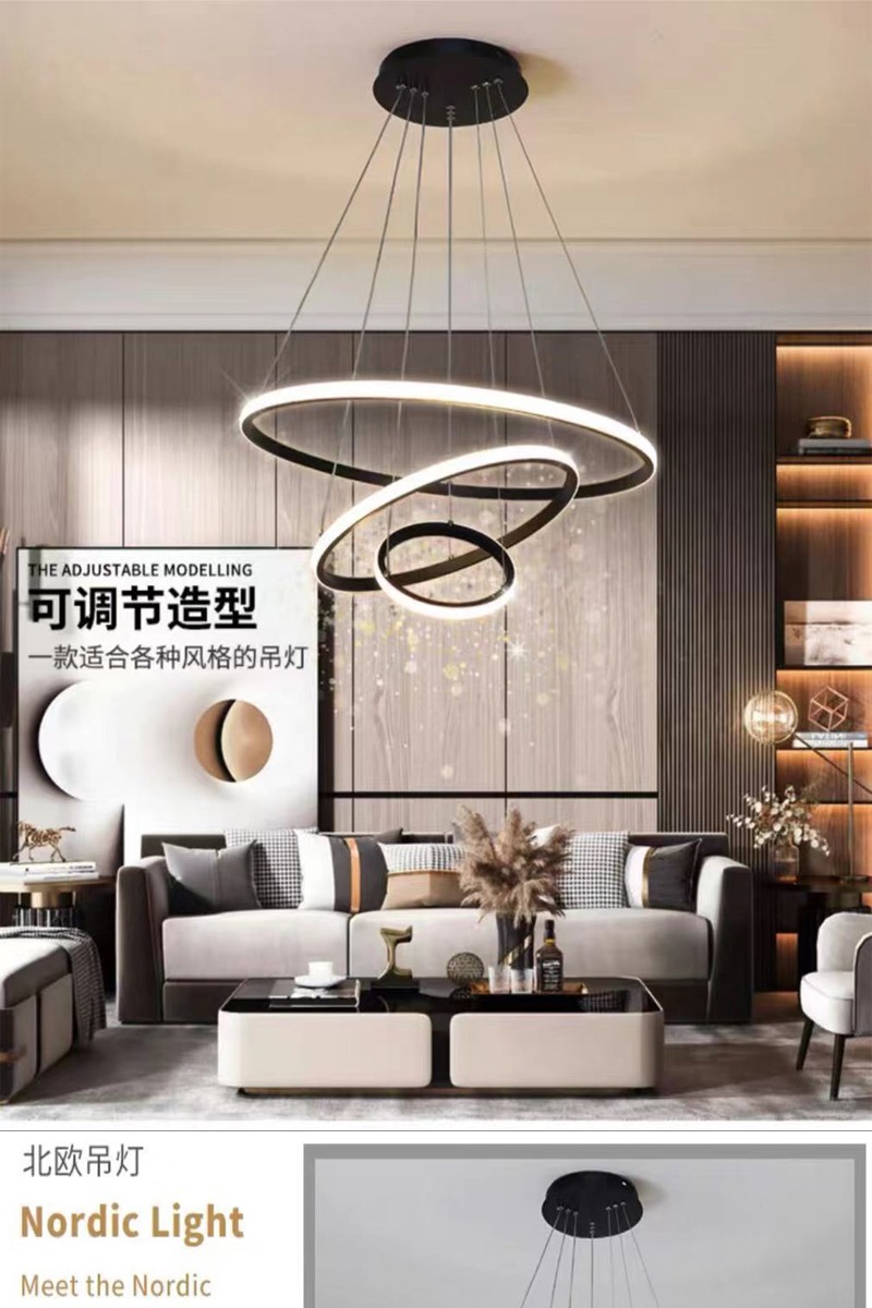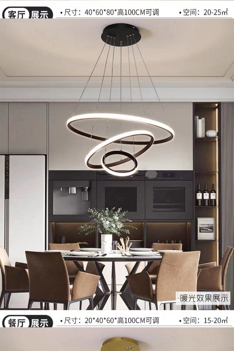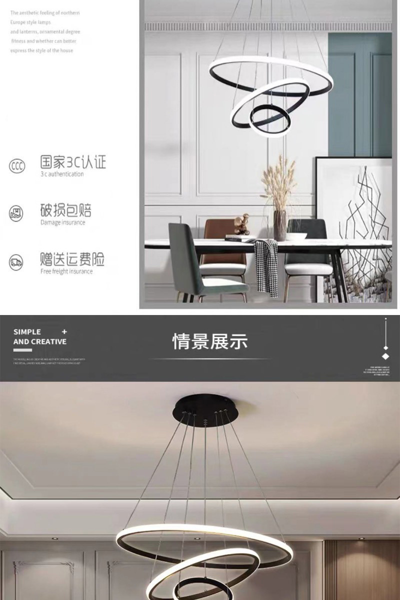 意式极简轻奢吊灯环形跨境爆款三环吊灯家居餐桌玄关简约餐厅吊灯