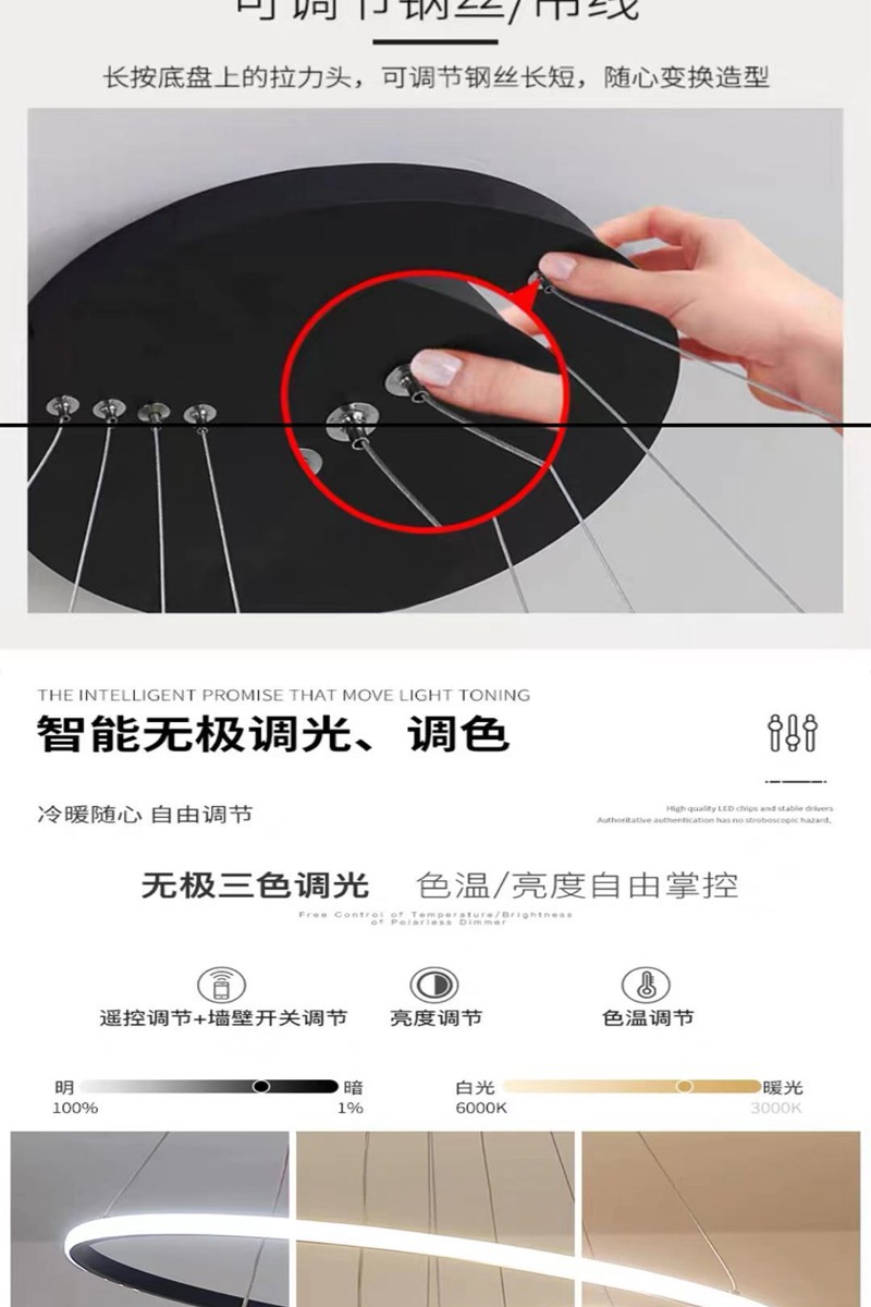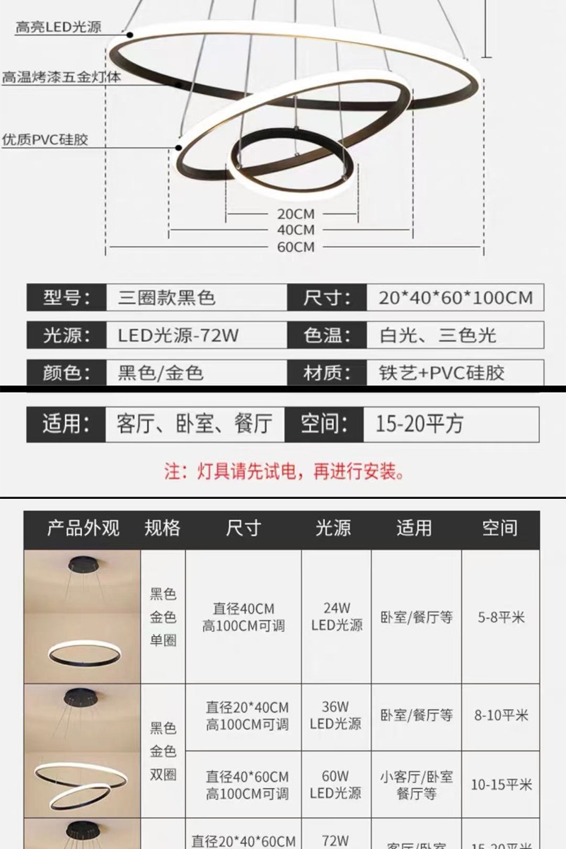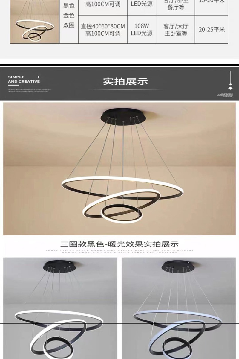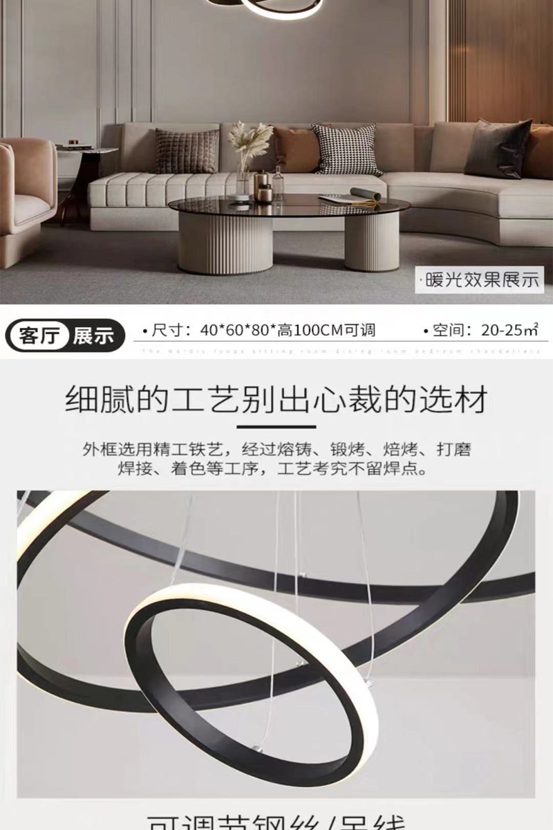 意式极简轻奢吊灯环形跨境爆款三环吊灯家居餐桌玄关简约餐厅吊灯