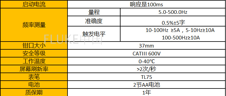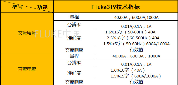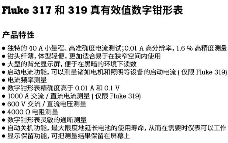 仕様 FLUKE 302+,FLUKE 303,FLUKE 305,FLUKE 312,FLUKE 317,FLUKE 319 測定可能な周波数コンバータ,FLUKE 381 フレキシブル電流クランプ付き,FLUKE 362,FLUKE 365,FLUKE 323,FLUKE 324,FLUKE 325,FLUKE 342,FLUKE 902FC,GTP150B
