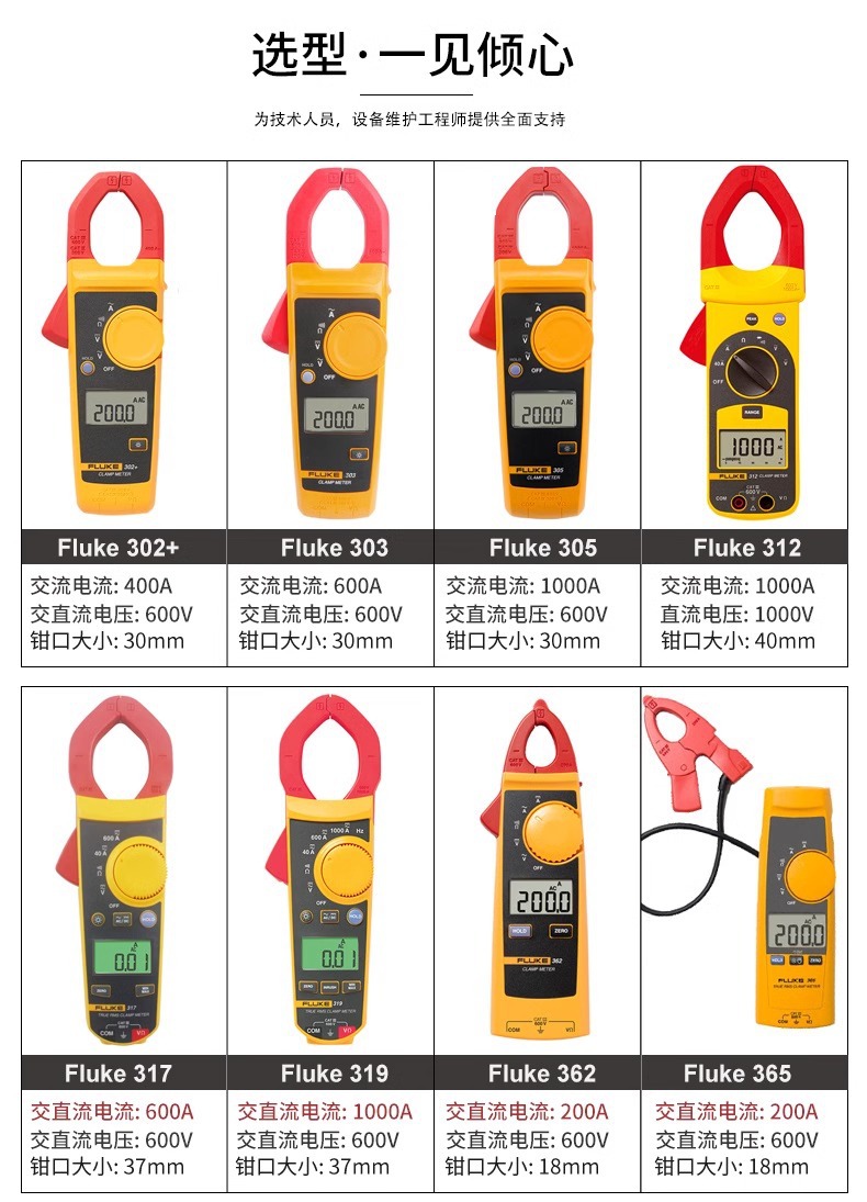 モデル番号 FLUKE 302+ 303 305 312 317 319 381 325 342
