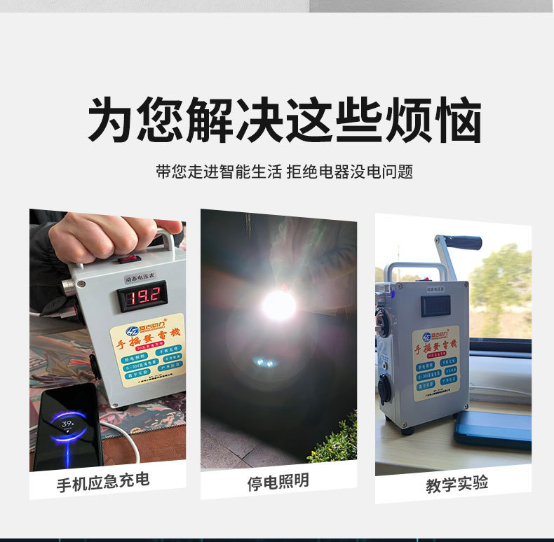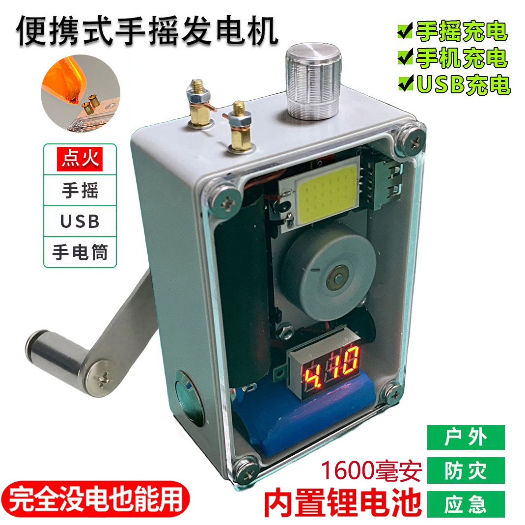 手摇发电机野外家用小型便携手动户外手机充电大功率照明应急