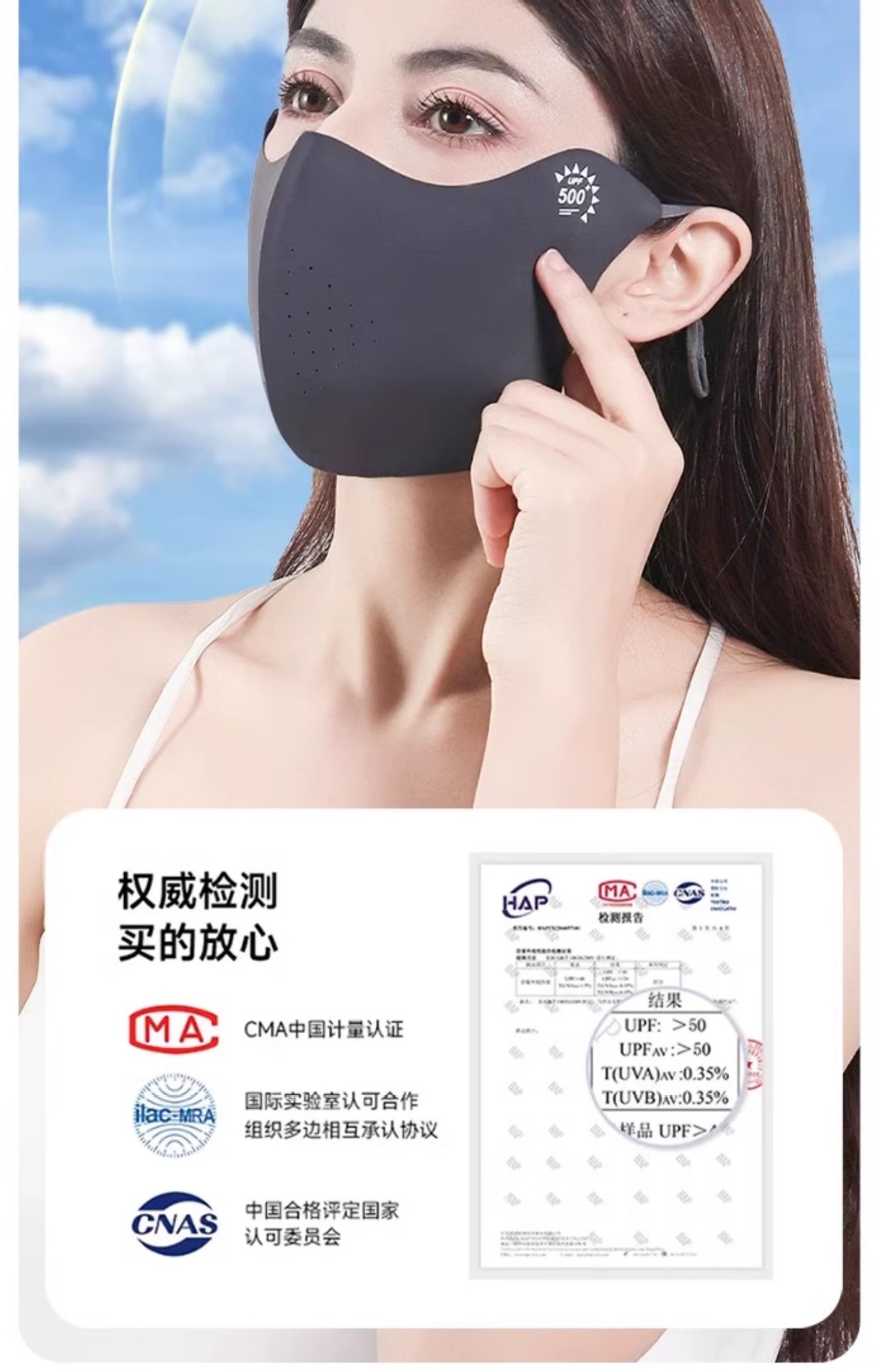 UPF500氷糸日焼け止めマスク氷感無痕眼角通気高颜値2025春夏薄手マスク