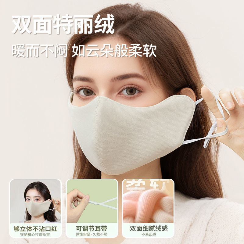 好姿尚】简约纯色无痕保暖口罩秋冬加厚骑行电动车护眼角面罩女