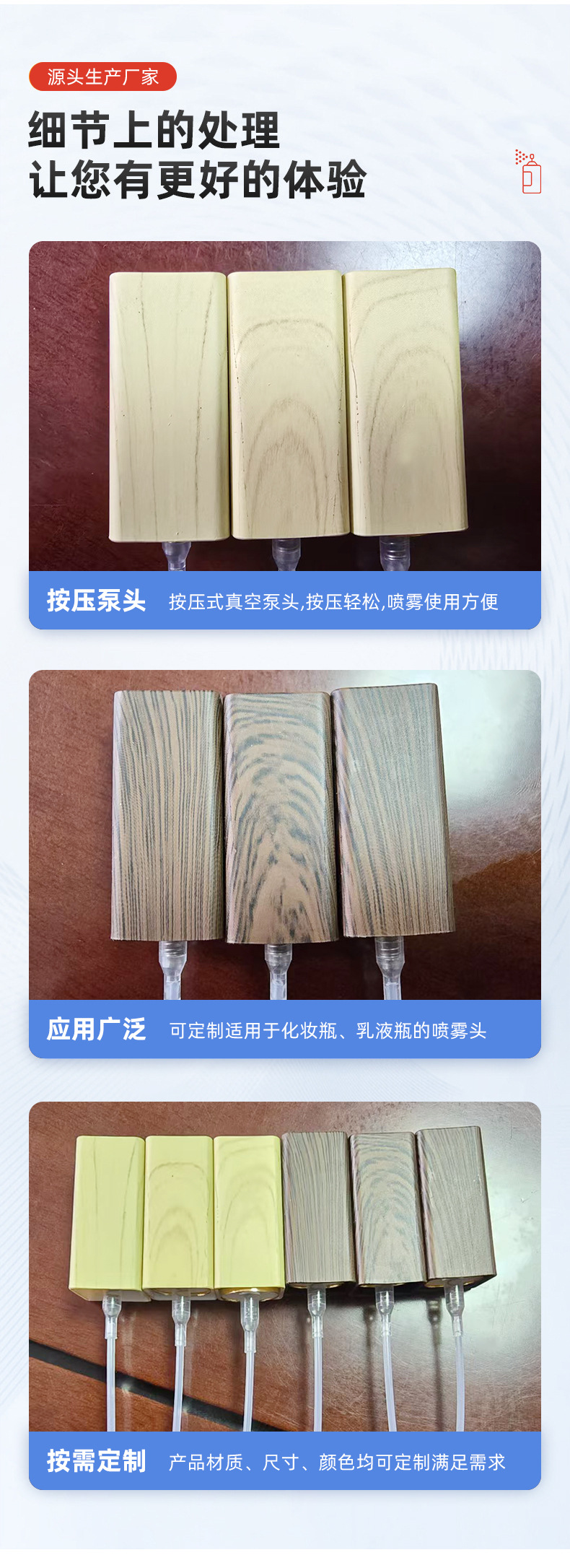 13歯アルマイトアルミニウム、純木カバー付き香水ノズル、密封性と耐久性、天然無垢材の質感、さまざまなボトル口に適応